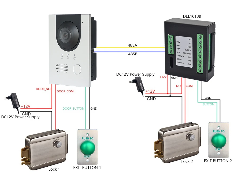 Используйте модуль расширения контроля доступа (DEE1010B) для управления двумя замками