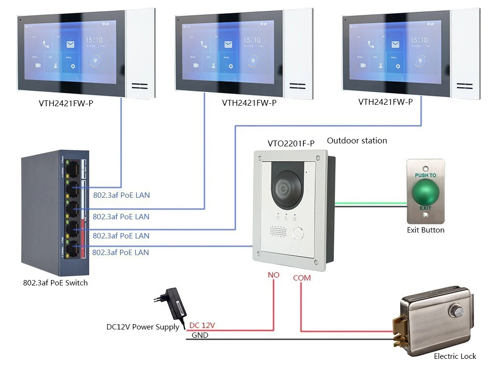 Примечание: Эта ссылка включает только наружный дверной звонок, не включает в себя внутренний экран дисплея и переключатель PoE