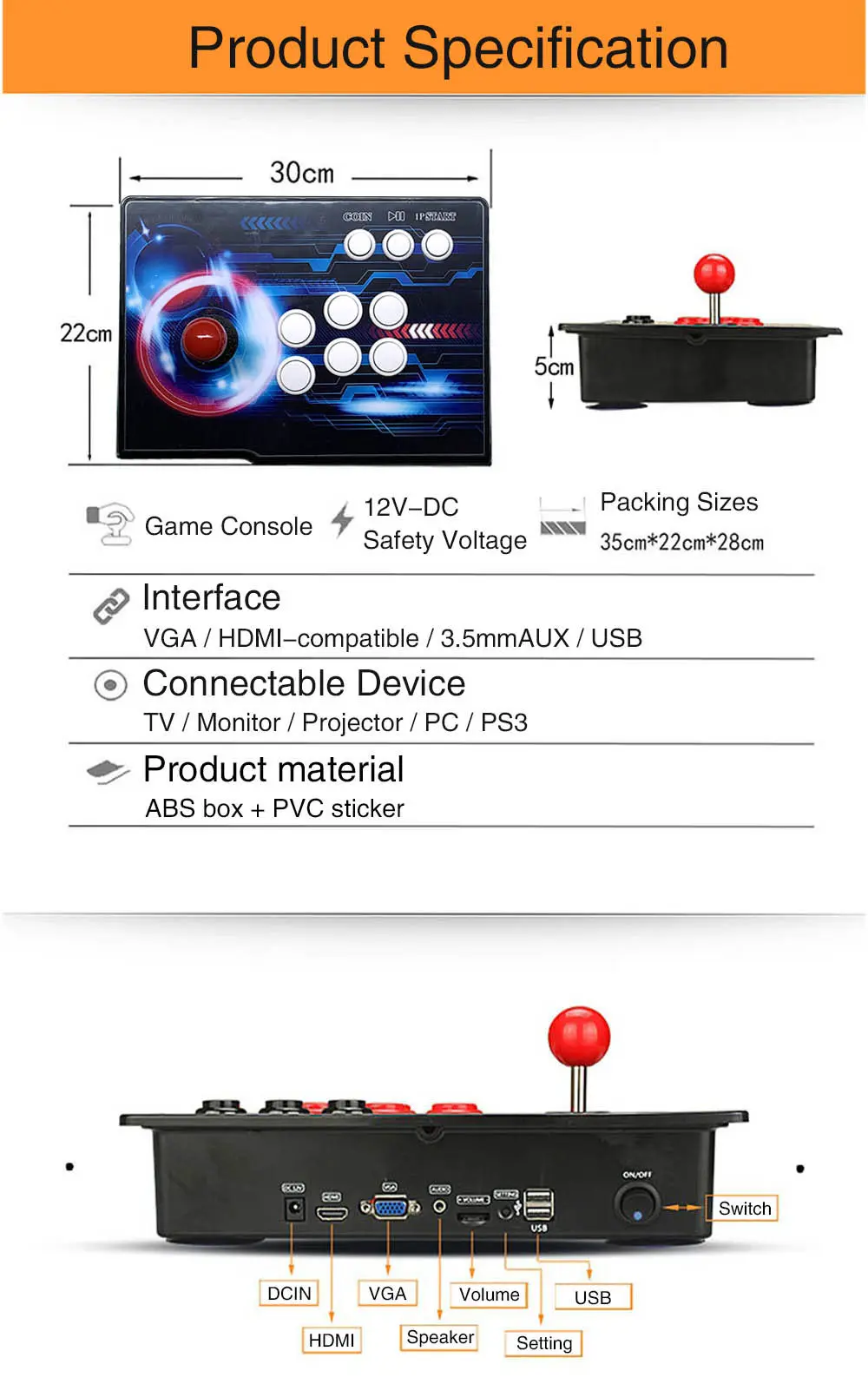 2🎮[Оригинальная многофункциональная система]:Оригинальная Pandora Saga DX поставляется с новейшей системой. Разрешение HD 1280x72 0P через HDMI/VGA;