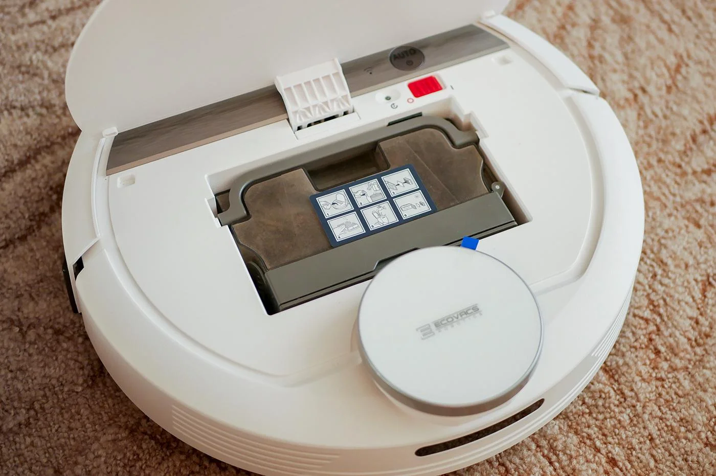 Ecovacs Deebot DE55 is enclosed in a round body, and the absence of sharp corners positively affects the movement of the device in the room. Due to the low height, the vacuum cleaner is able to clean even in hard-to-reach places. When cleaning, the route map is drawn in the application.