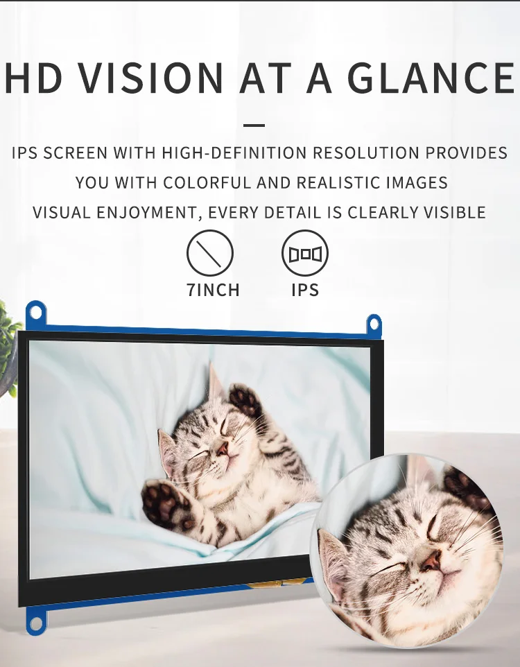 🍓.Используется в качестве raspberry pi display, который поддерживает Raspbian, Ubuntu, Kali-Linux, Kodi, win10 IOT, single-touch, free drive.
