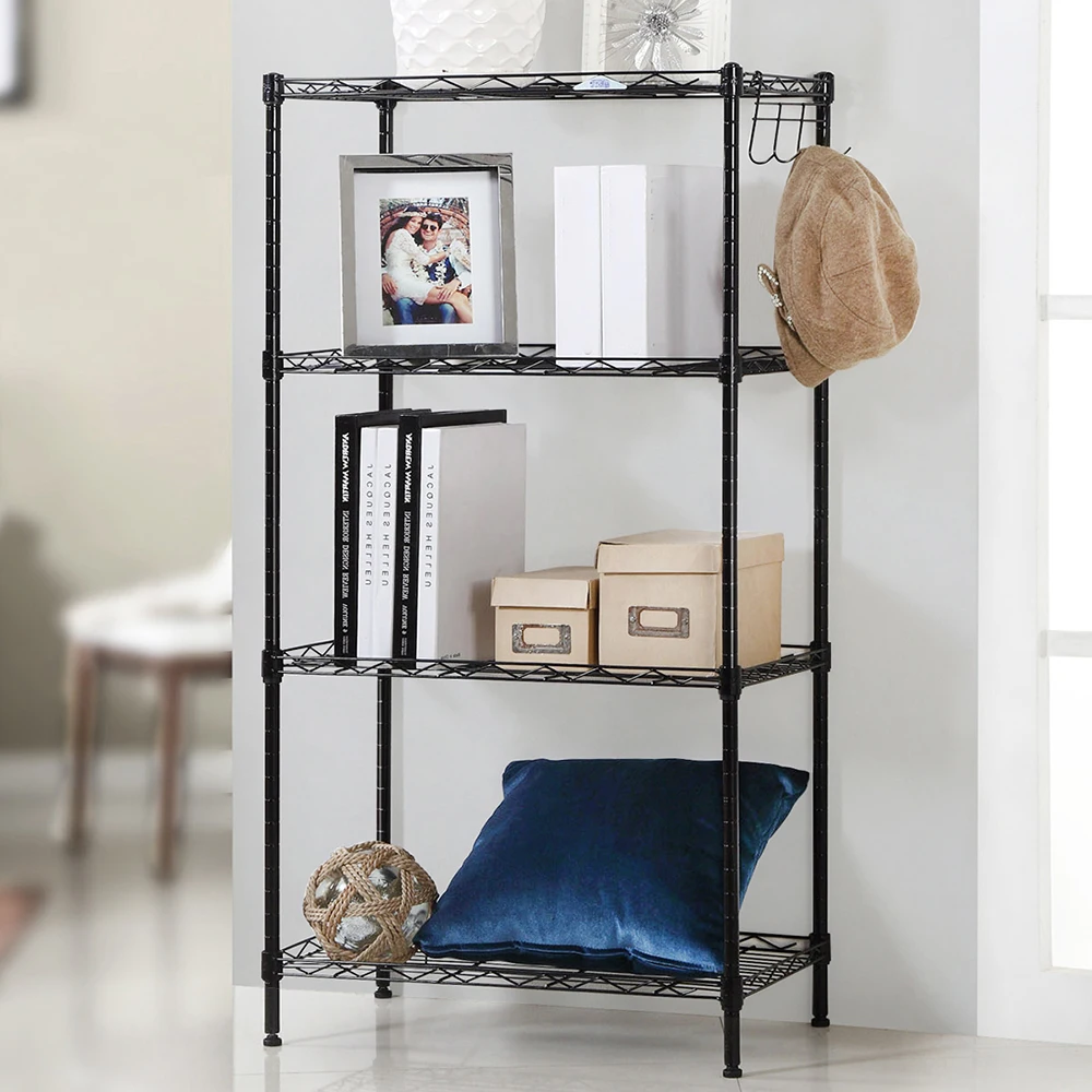 Этот 4-ярусный выставочный стеллаж для хранения имеет стильный, практичный, экономия пространства характеристики, помогая вам избавиться от беспорядок в домашних условиях.