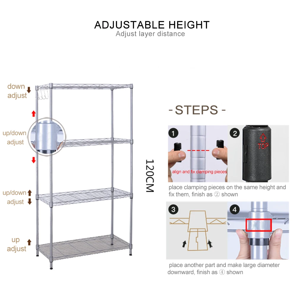 Стойка с регулируемой высотой:Вы можете отрегулировать расстояние слоя в соответствии с высотой элемента, размещенного в стойке, удовлетворяя ваши привычки и требования.