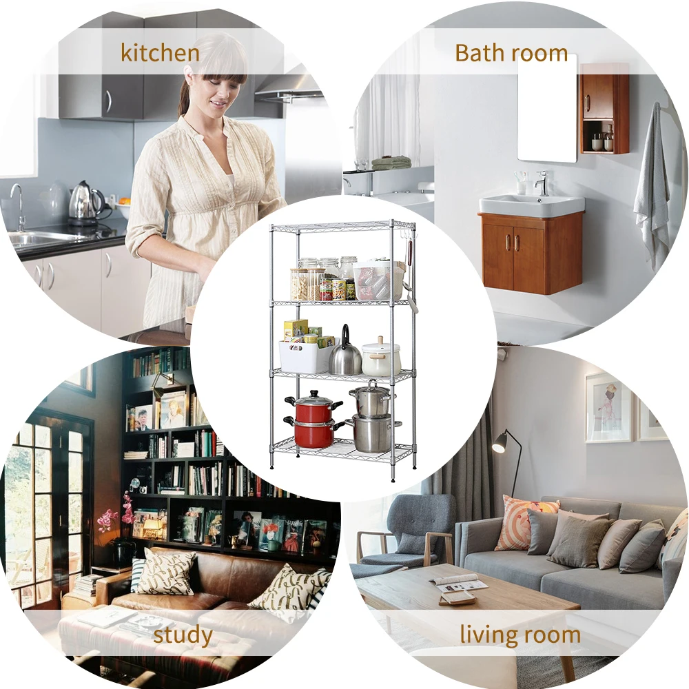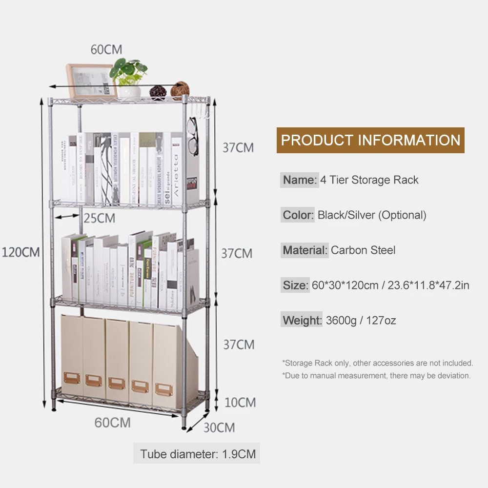Подходящий Размер:60*30*120 см 4 ярусный стеллаж для хранения занимает полное использование пространства, не занимая слишком много места, подходит для использования дома.