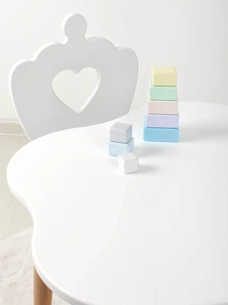 Детский стол необычной формы-красивый и прочный детский стол. Стол надежно крепится на четырех ножках и обеспечивает полную безопасность во время активных настольных игр Вашего ребенка. Стол имеет закругленные углы, а края столешницы защитят детей от синяков. Ножки имеют многоступенчатую обработку, что придает им максимальную гладкость. Стол легко собирается, нужно просто прикрутить ножки к специальным креплениям, размещенным на столешнице.