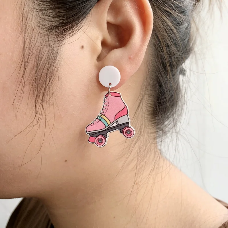 Милые розовые роликовые коньки, подвески с принтом, акриловые серьги-гвоздики для девочек, мультяшная обувь для катания на коньках, Кубик Рубика, модные ювелирные изделия, подарки