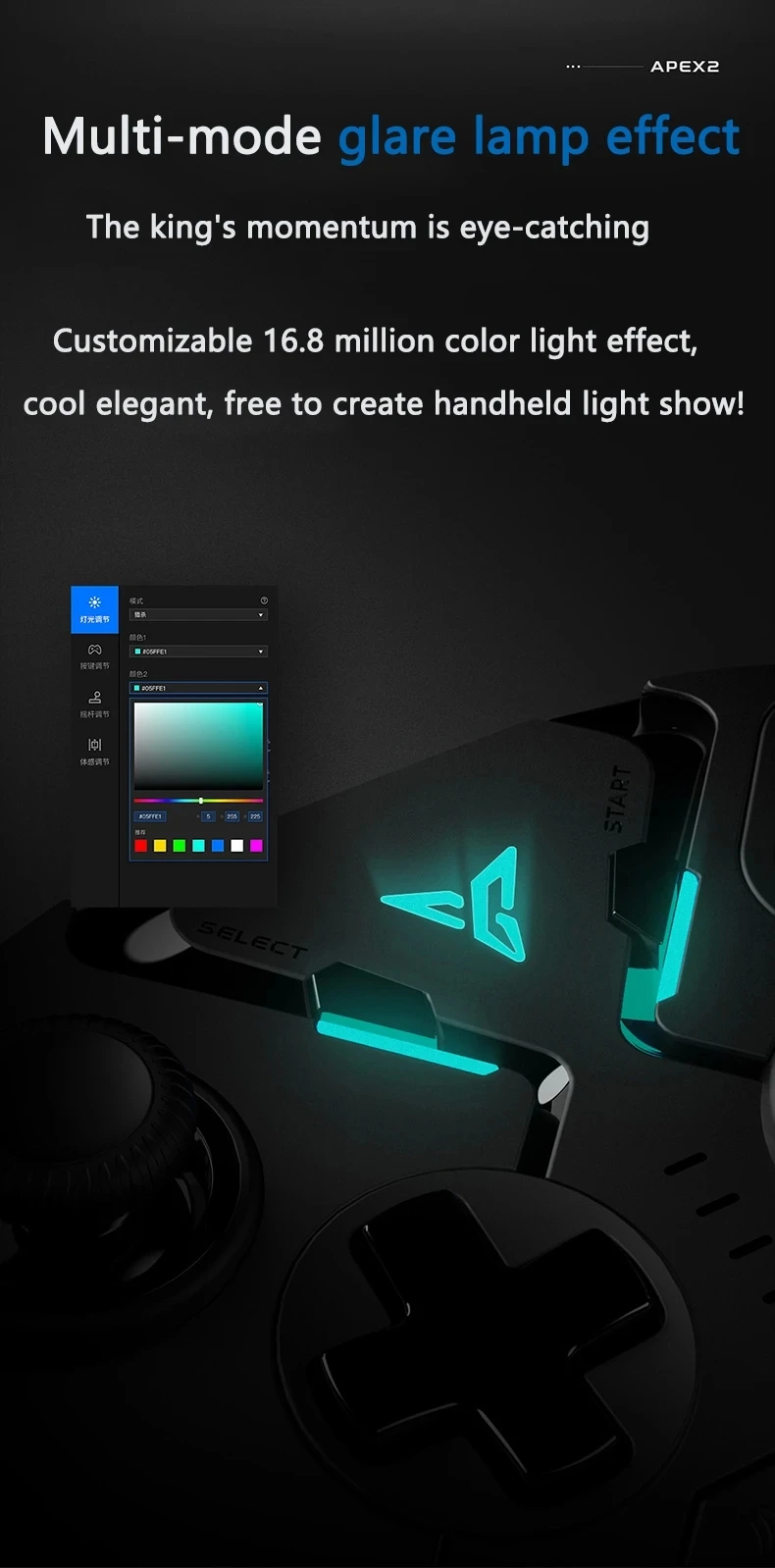 Многомодовые световые эффекты бликов; Настраиваемые 16,8 миллионов цветовых световых эффектов, что делает вашу игру более крутой