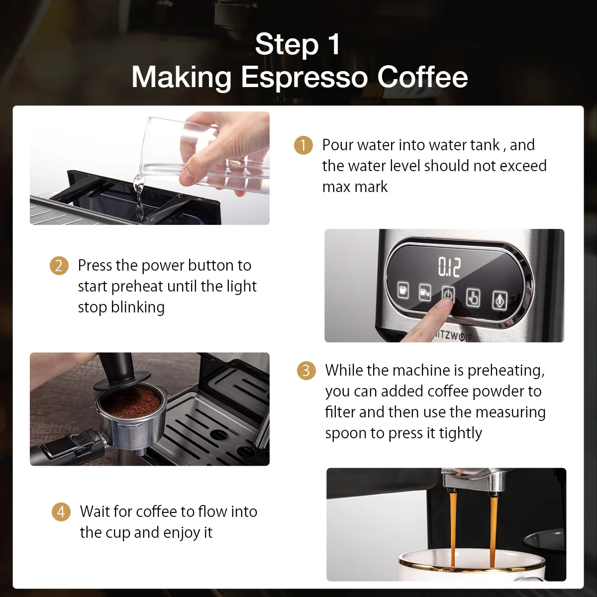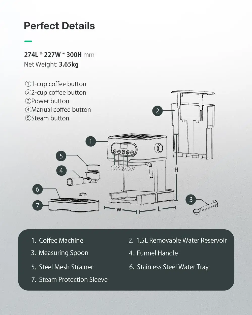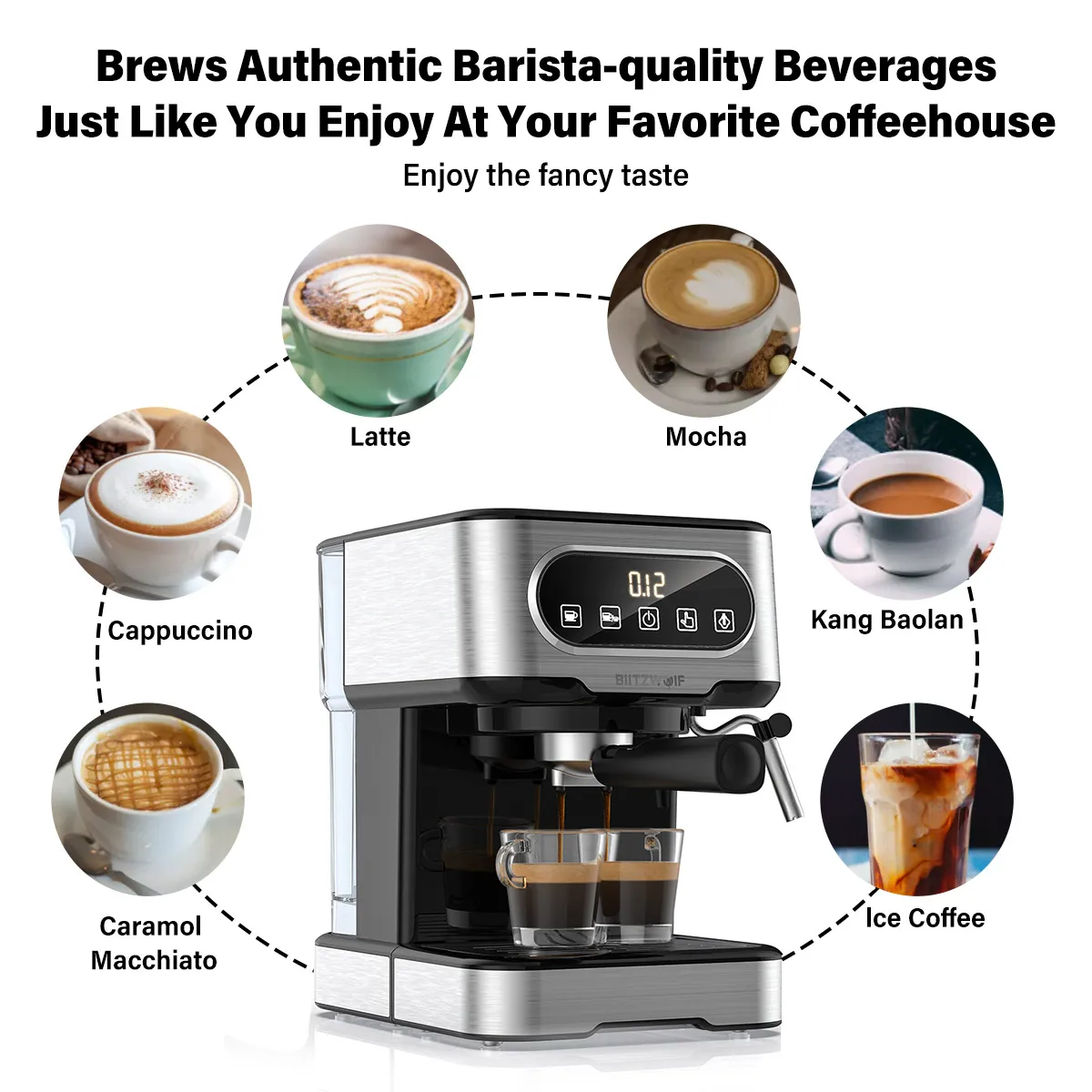 * Профессиональное молочное вспенивание:Пузырьковый капучино и латте с помощью горячего пара.