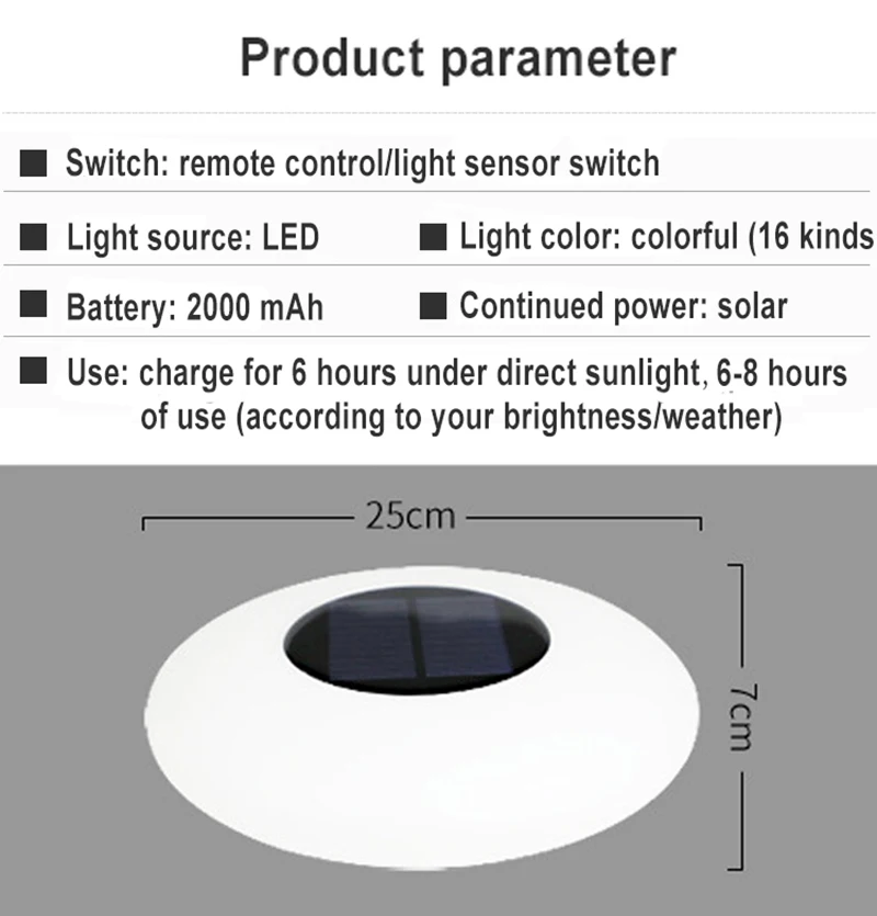 ❥Зарядка от солнечной энергии, вы можете положить его в сад весь день, что более удобно и Энергосберегающе.