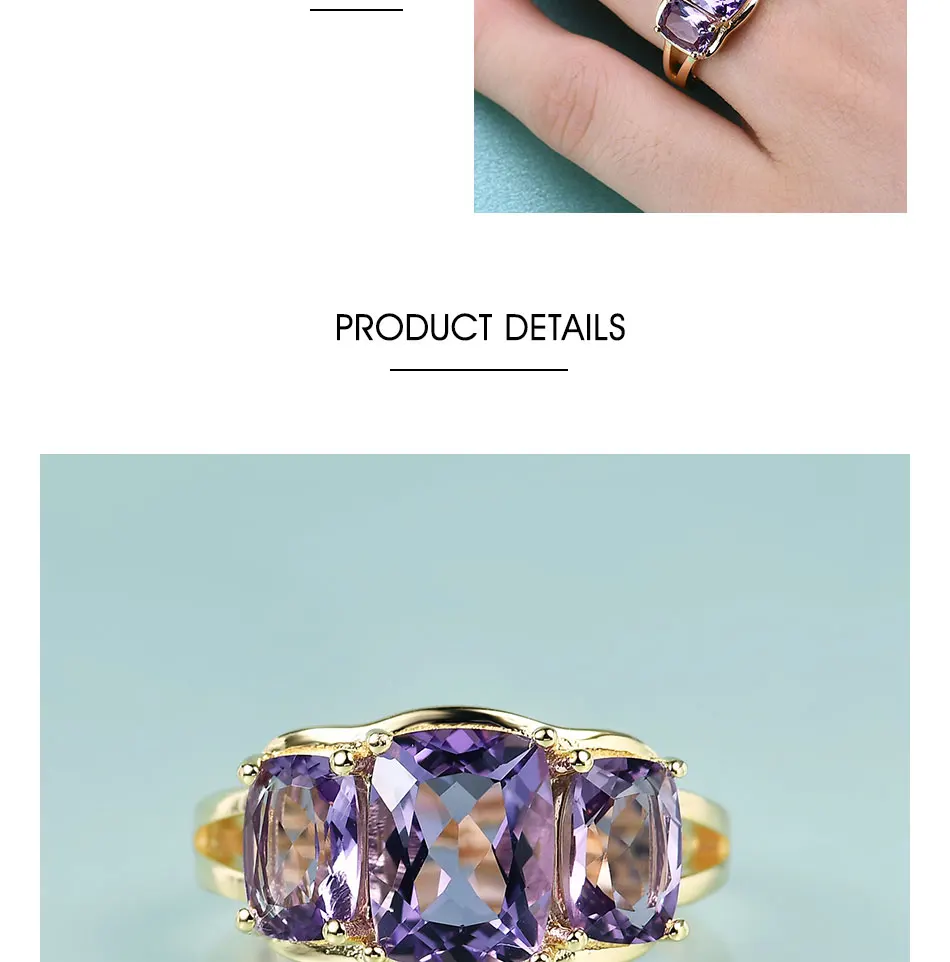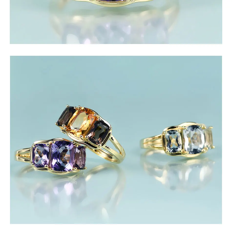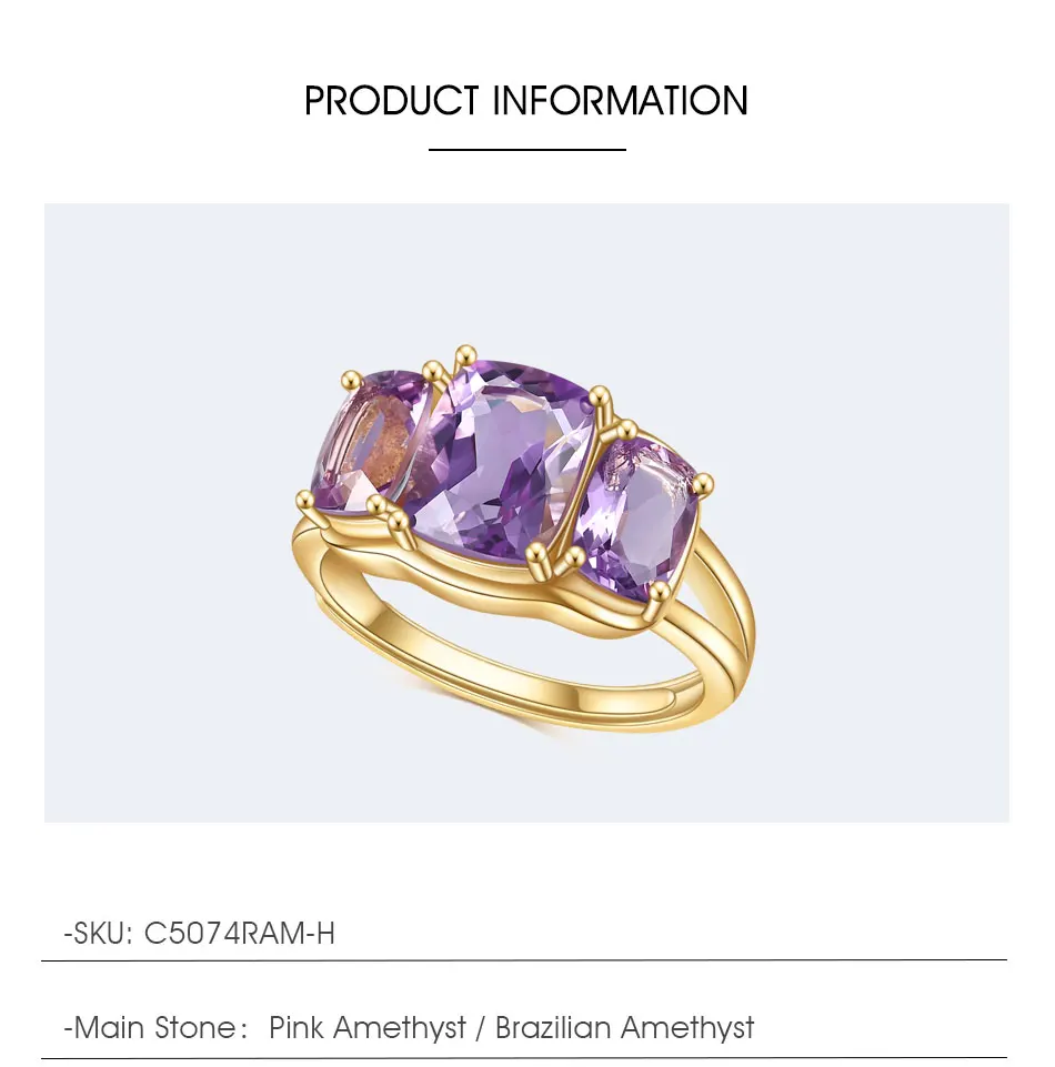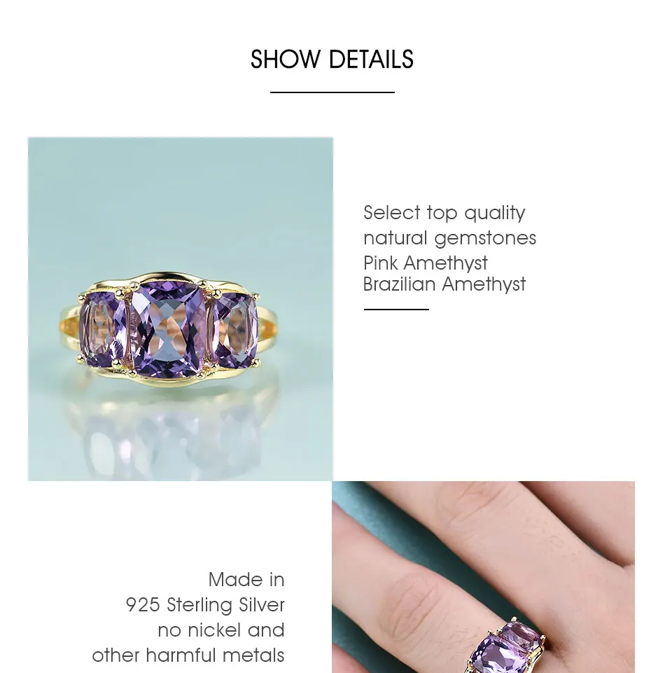 Женское серебряное кольцо GEM'S BEAUTY, серебряное кольцо из серебра 925 пробы с тремя камешками, настоящее бразильское кольцо с аметистом, золото 14 к, 10 к