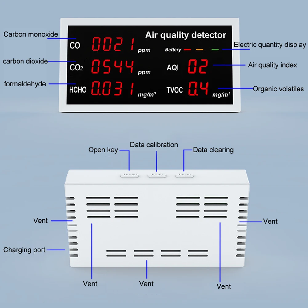 Широкое применение: вы можете использовать этот продукт для обнаружения домашнего воздуха, обнаружения воздуха в автомобиле, обнаружения воздуха в офисе и так далее.