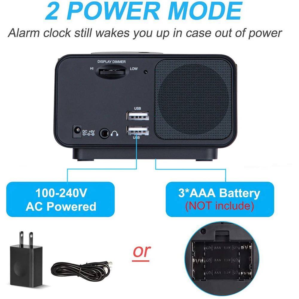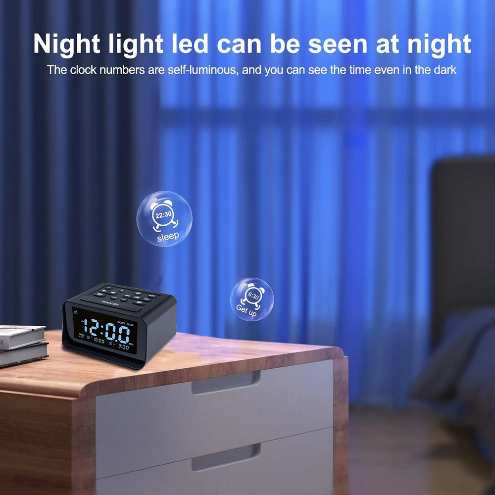 1. Fm-радио и таймер сна будильник Диапазон радиочастот: 87,5-108 МГц, вы можете легко найти радио частоту, которая вам нравится. Таймер сна перед засыпанием, вы можете слушать любимую радиочастоту: 10-120 минут.