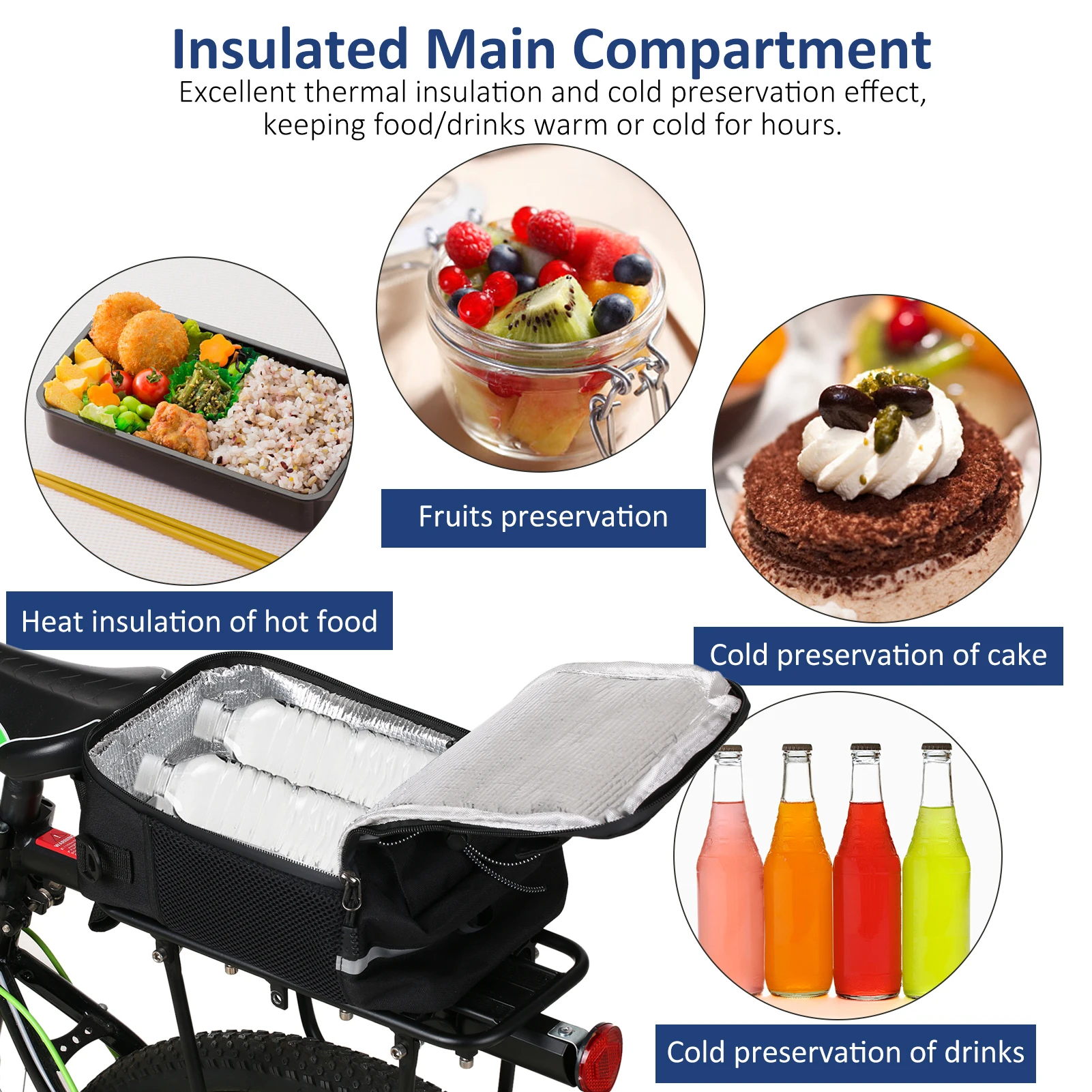 Эта велосипедная сумка имеет изолированный основной карман, чтобы держать еду в тепле или напитке холодной. Верхний карман и сетчатые боковые карманы для небольших аксессуаров. Светоотражающие Полоски для увеличения видимости и безопасности в ночное время. С регулируемыми монтажными ремнями, его можно установить на заднюю стойку велосипеда, чтобы использовать в качестве сумки для багажника велосипеда, установленный на руле скутера для использования в качестве сумки для руля скутера, или просто Носите в руке, чтобы использовать в качестве сумочки, или прикрепите плечевой ремень, чтобы использовать в качестве сумки через плечо/сумки через плечо. Это идеальный выбор для велосипедиста.