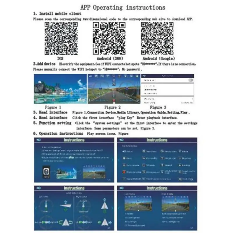 Функция: Видео/фотография/подъем и вниз/вперед и назад/влево и вправо поворот/влево и вправо полет/парение/вращение на 360 градусов/установка высоты