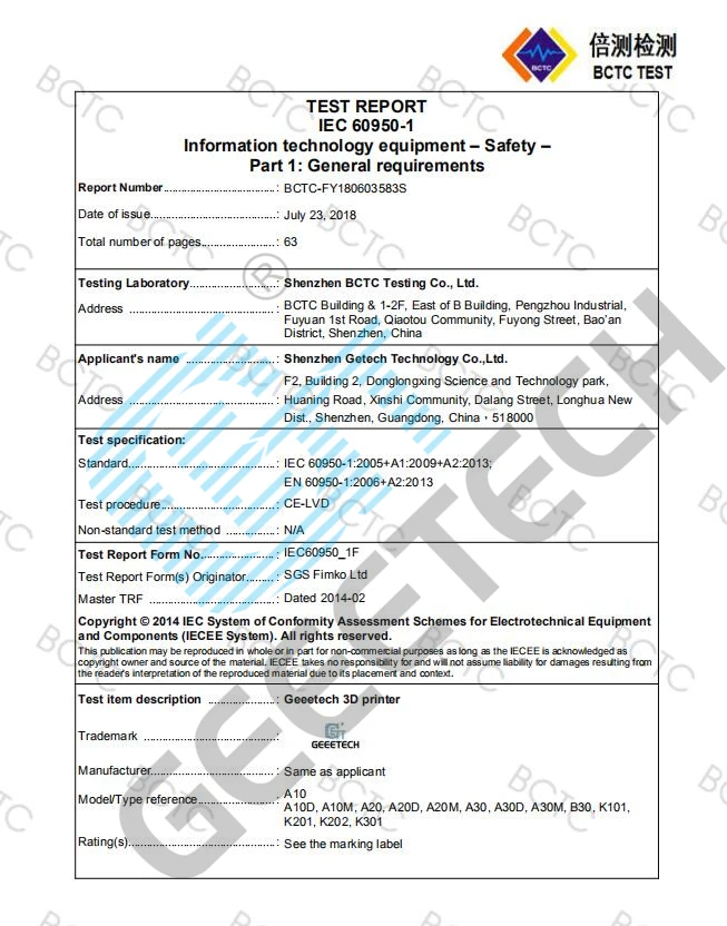 Характеристики продукта Geeetech A10