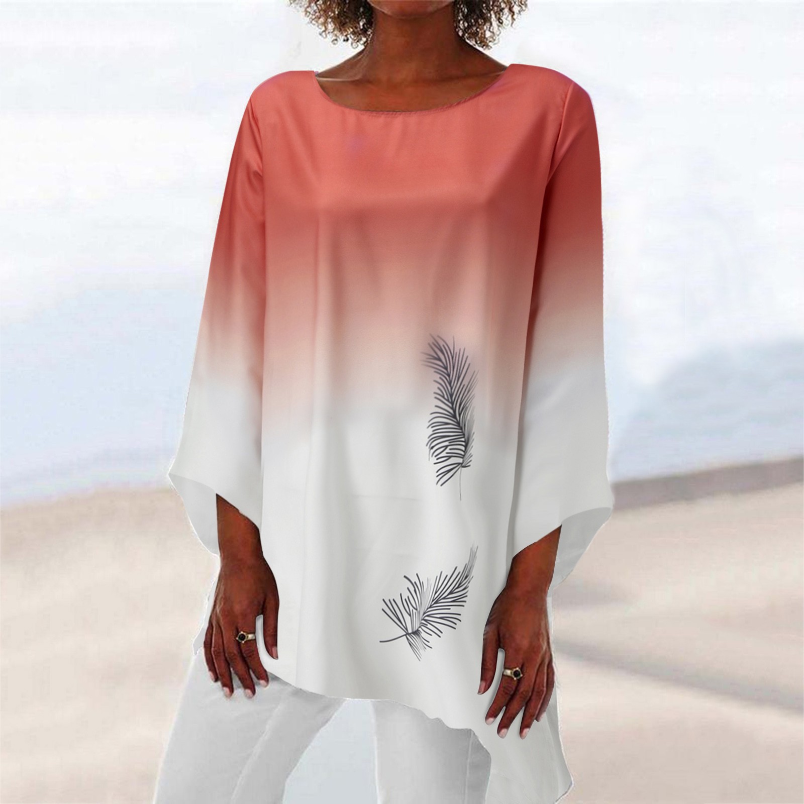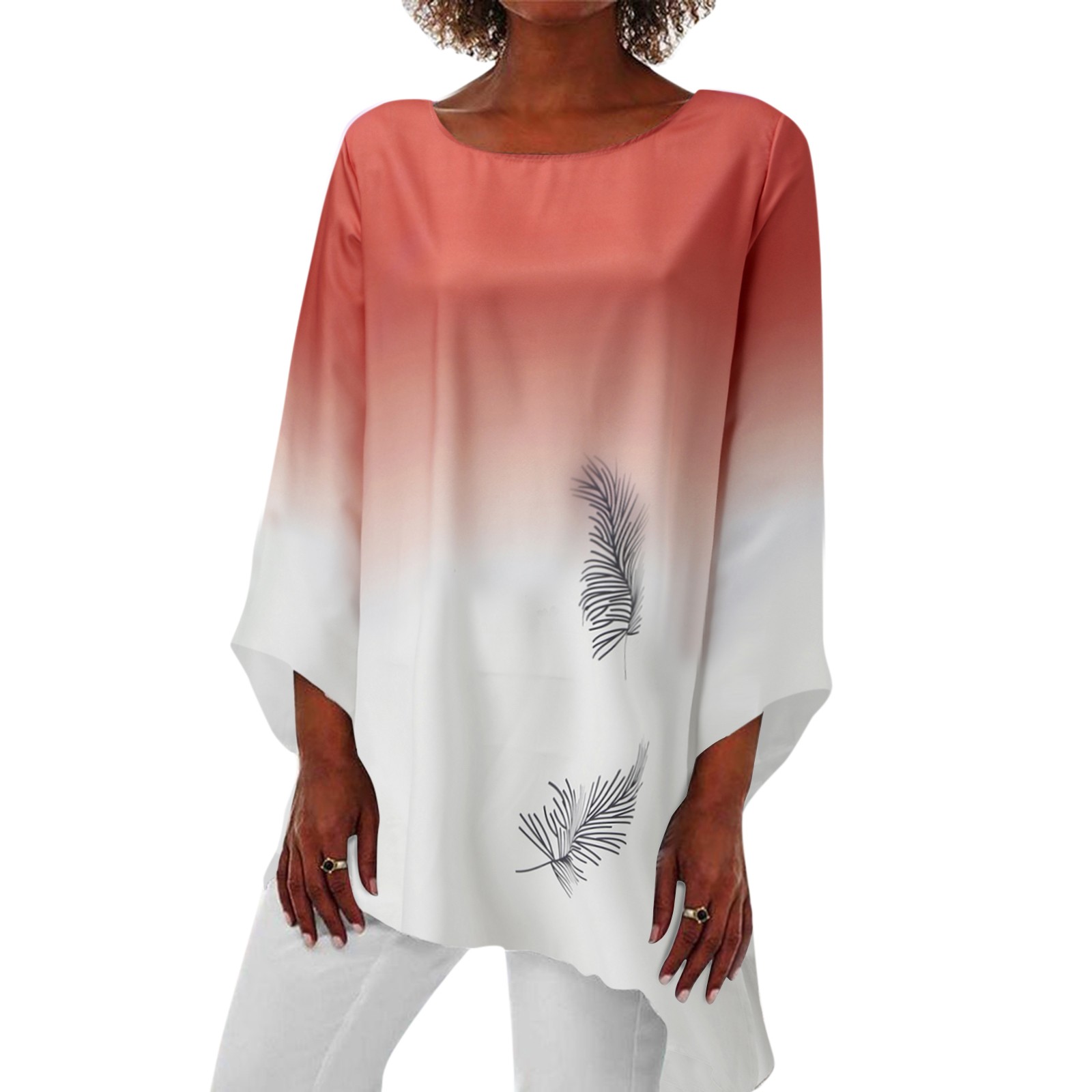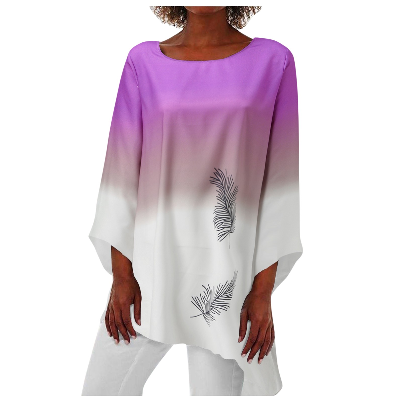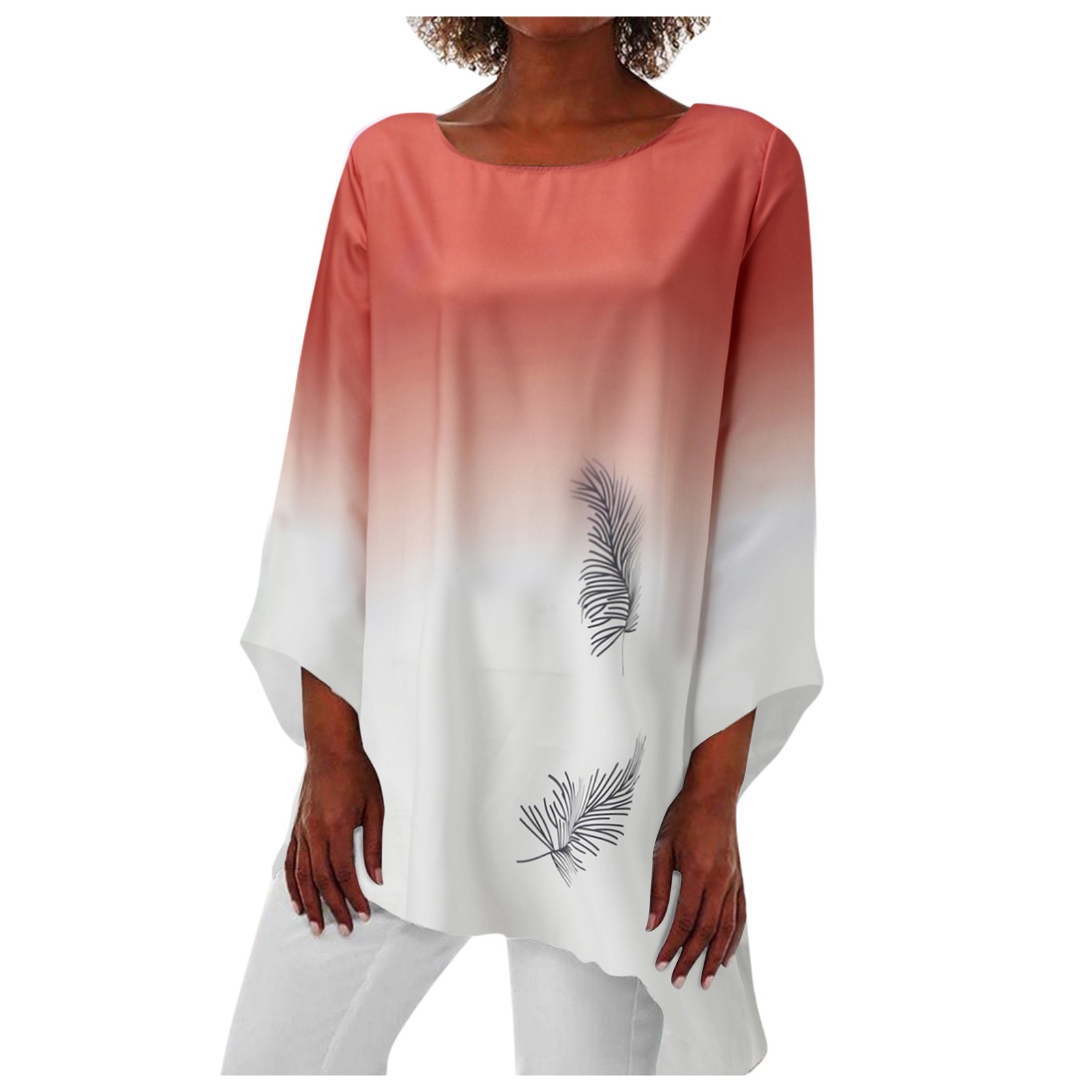Женская Повседневная Свободная блузка с принтом, винтажная туника с длинным рукавом и асимметричным подолом