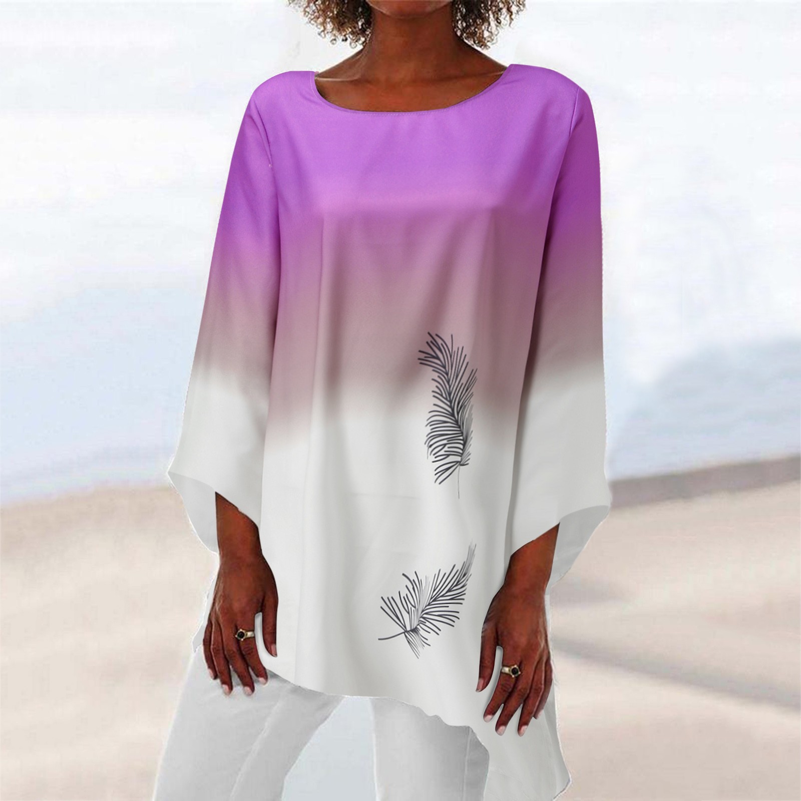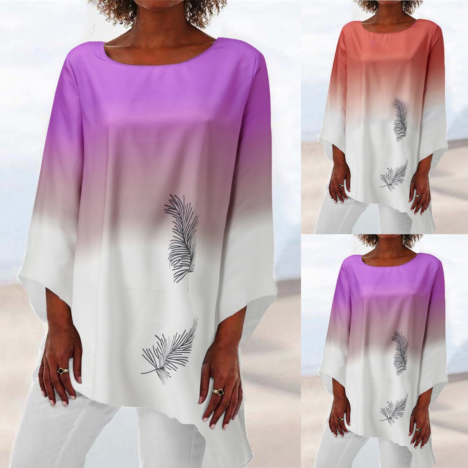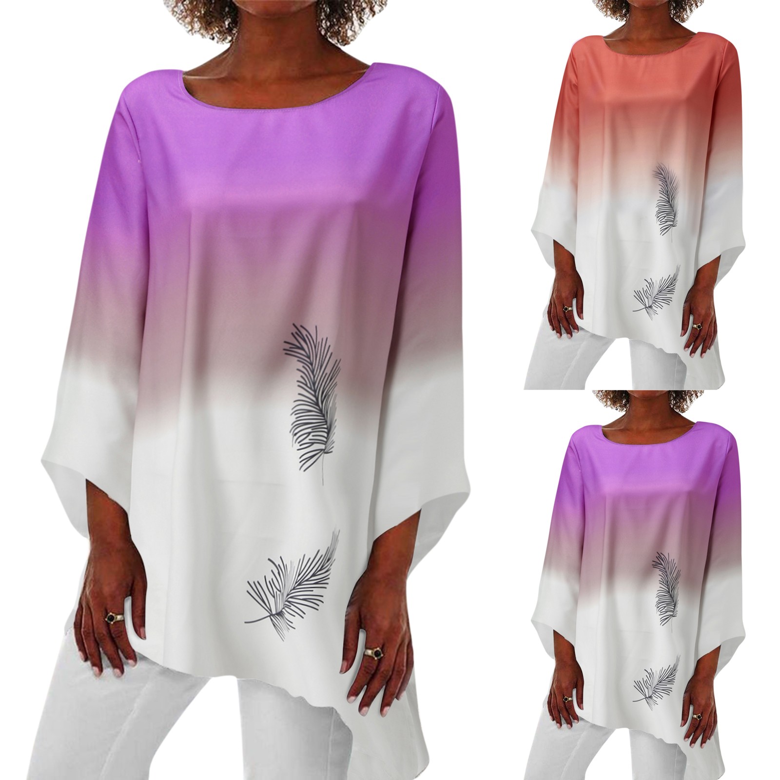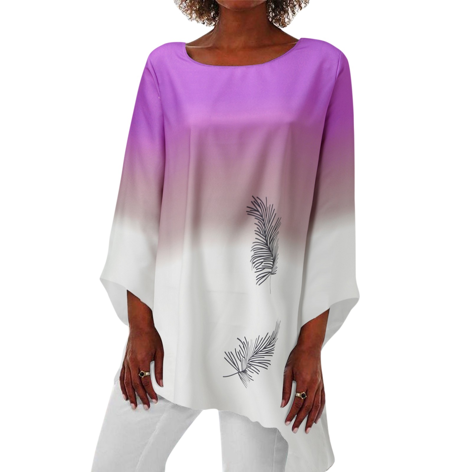 Женская Повседневная Свободная блузка с принтом, винтажная туника с длинным рукавом и асимметричным подолом