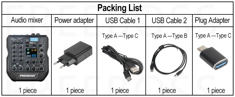 Freeboss AG-AS04B 24Bit 99DSP эффекты 192 кГц частота дискретизации Bluetooth мини аудио микшерный пульт с USB, запись и 48В Мощность