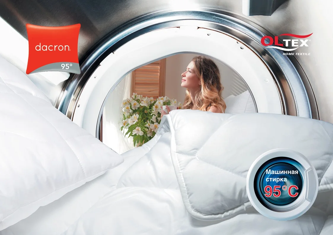 Подушка Dacron® 95 - единственная подушка, которую можно стирать при 95 ° C благодаря особому волокну. Большинство бактерии погибают при 60 ° C, это обеспечивает идеальную гигиену при каждой стирке.