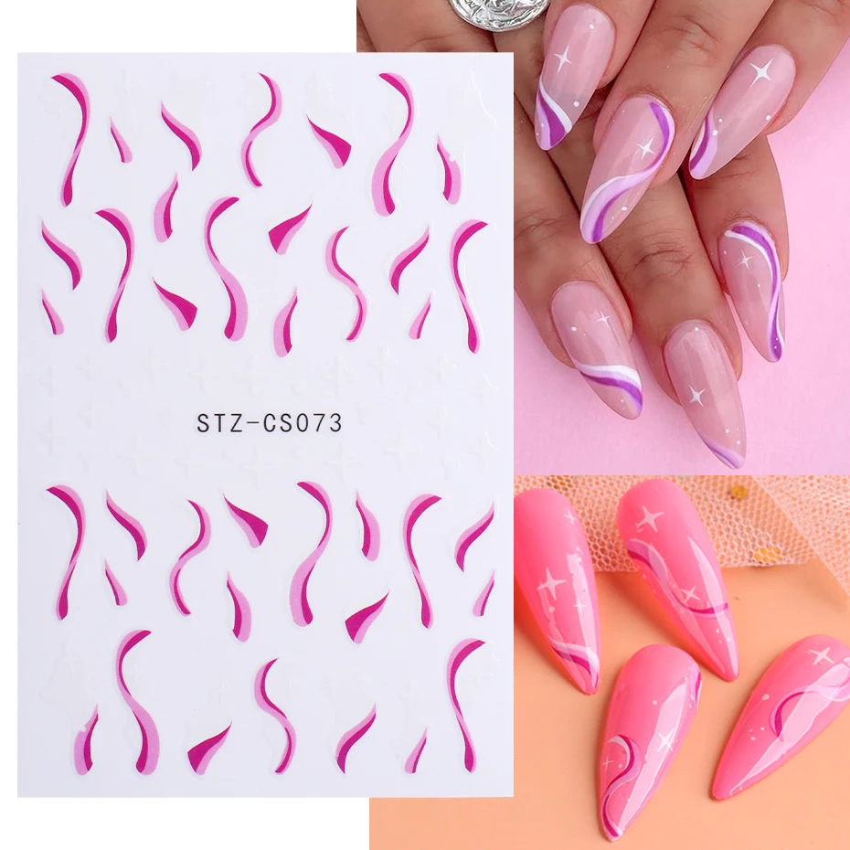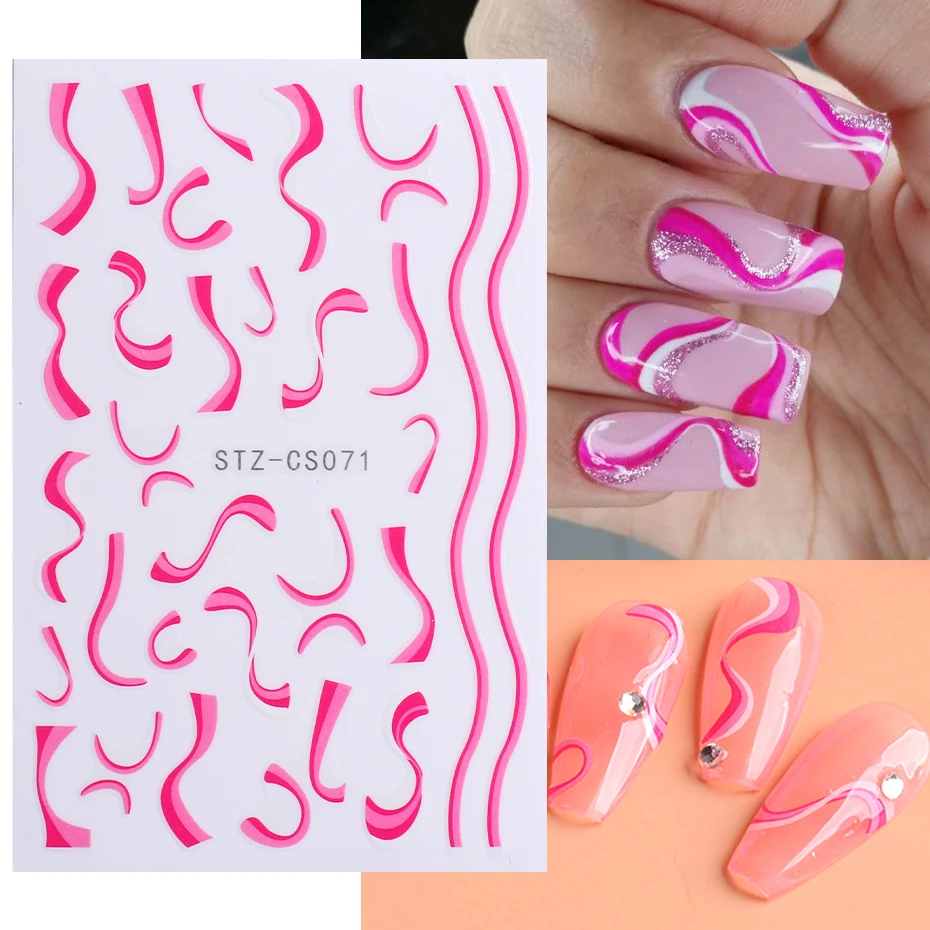 3D вихревые линии наклейки для ногтей геометрические неровные вихревые волнистые коровы печать наклейка на ногти искусство амулеты Маникюр слайдер кончик