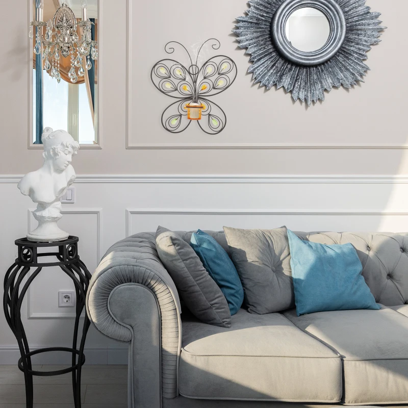 Этот продукт является декоративным настенным держателем для свечей, который изготовлен из прочного и прочного железного материала. Он имеет хорошее украшение и может хорошо украсить ваше живое пространство. Он имеет разумный структурный дизайн, легко и легко украсить, что может помочь вам хранить подсвечник и создать теплую и романтическую атмосферу. Это очень хороший декоративный подсвечник, который будет служить вам хорошо.