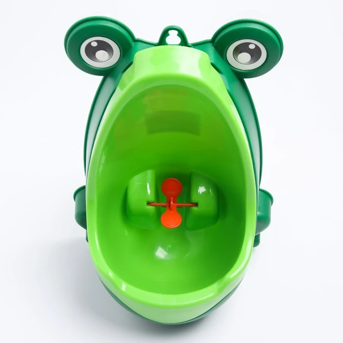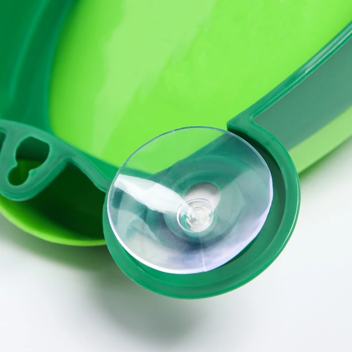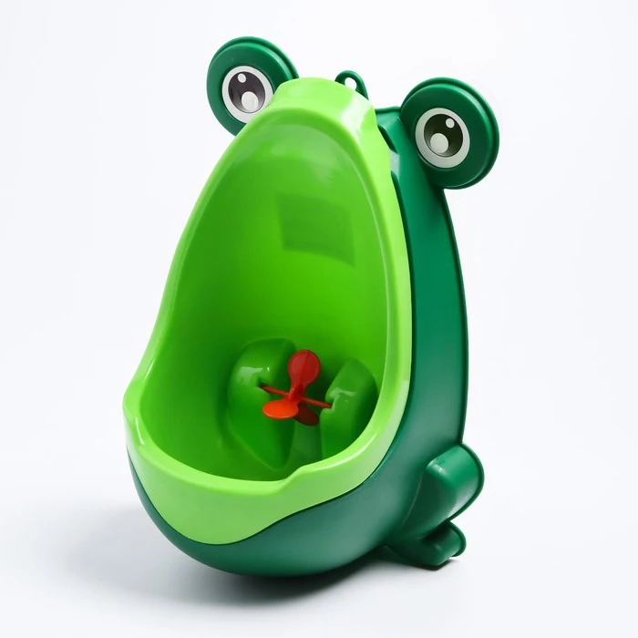 Детский писсуар выполнен в виде лягушки. У неё есть лапки, глазки и большой рот с лопастями, которые будут вращаться, если ребёнок успешно справится со своей задачей. Изделие крепится на стену при помощи двух присосок. Вы можете регулировать высоту в соответствии с ростом малыша.