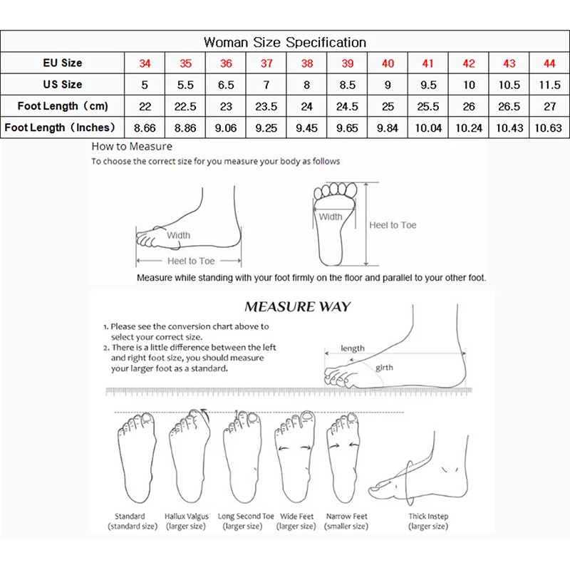Внимание:1. Может наблюдаться небольшая разница в отображении цветов из-за настроек монитора компьютера.2. Из-за разницы в методе измерения может присутствовать замеры сделаны вручную, поэтому возможны отклонения в размере на 1-3 см (1 см = 0,39 дюйма). Благодарим за понимание!3. Наш размер не является стандартным Европейским размером, и он равен только длине стопы!4. Стандартные размеры разных стран и разных производителей отличаются, длина вашей стопы является единственным критерием для выбора размера.