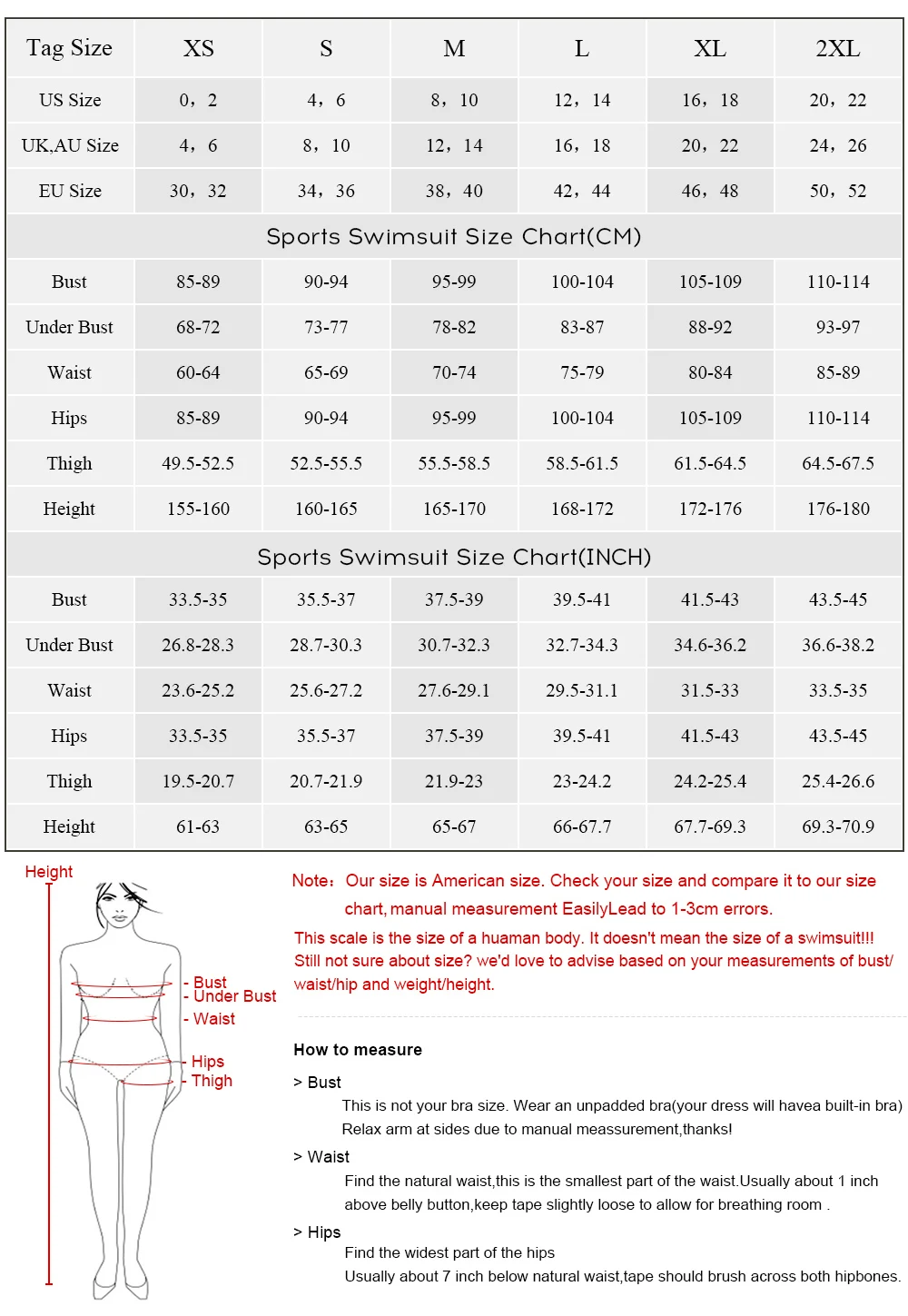 2. Купальники были измерены после растяжения, и это Таблица размеров тела.