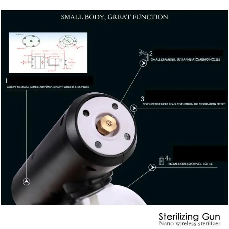 250 мл Беспроводной нано-синий светильник, паровой спрей, дезинфекционный распылитель, пистолет, зарядка через USB