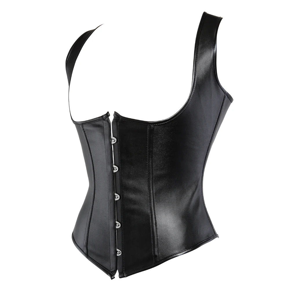 Корсеты для женщин, корсет из искусственной кожи в стиле панк-рок, корсет на молнии, Ретро готический корсет на талии, Бюстье с баской, топы, корсет из искусственной кожи, синтетический черный корсет, женская одежда, нижнее белье размера плюс