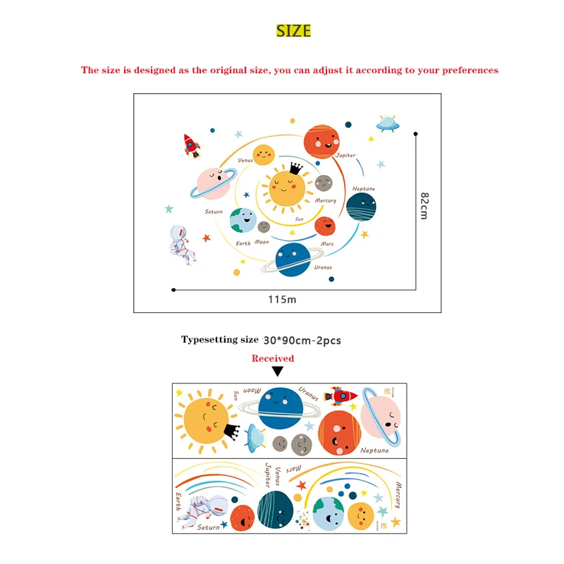 Солнечная система наклейки на стену наклейки для детских комнат Звезды Космос планеты Земля солнце Сатурн Марс плакат роспись школьный Декор