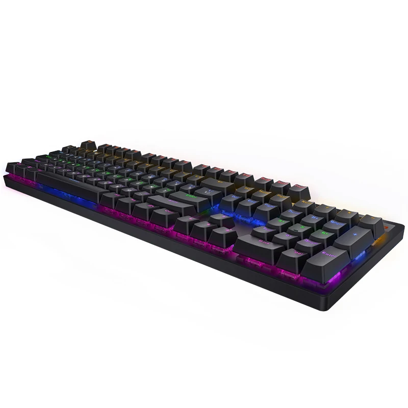 【Подсветка с защитой от GHOSTING keyboard】все 104 механические игровые клавиши без коллизии (n-Key rolllover) для максимальной производительности игр. 12 мультимедийных клавиш, нескользящий эргономичный, защищенный от брызг дизайн. Поставляется с полной цифровой клавиатурой и позолоченным разъемом USB без коррозии для надежного подключения.