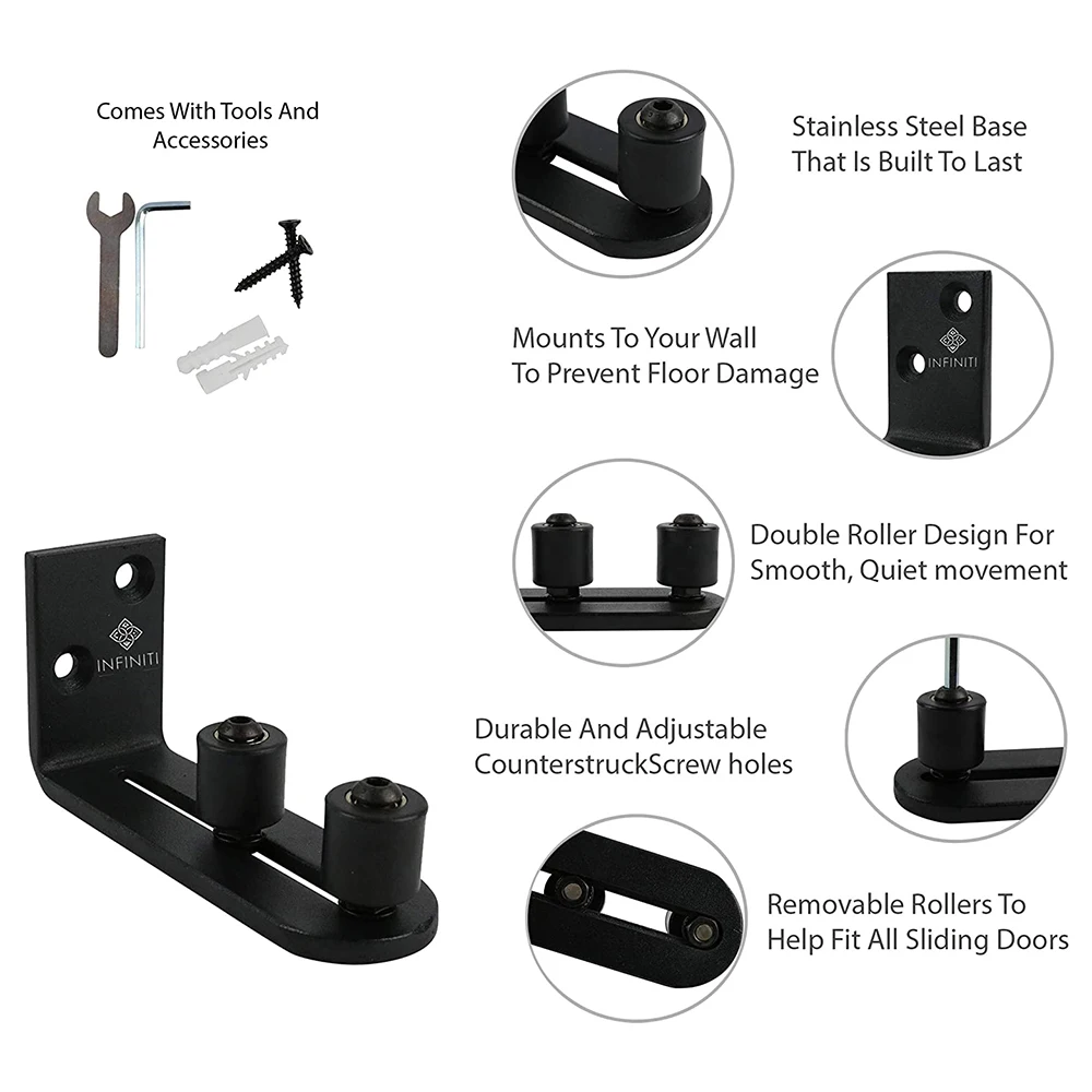 * Наша направляющая для дверей сарая полностью регулируется, совместима с раздвижными дверцами, которые надежно удерживают вашу дверь сарая в течение нескольких лет.