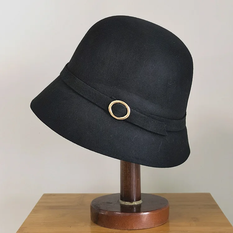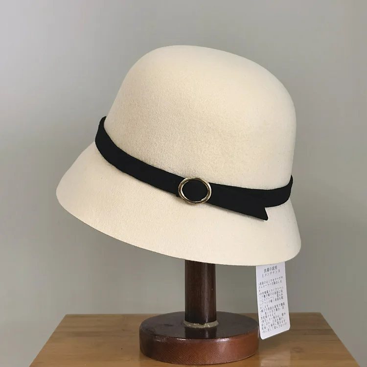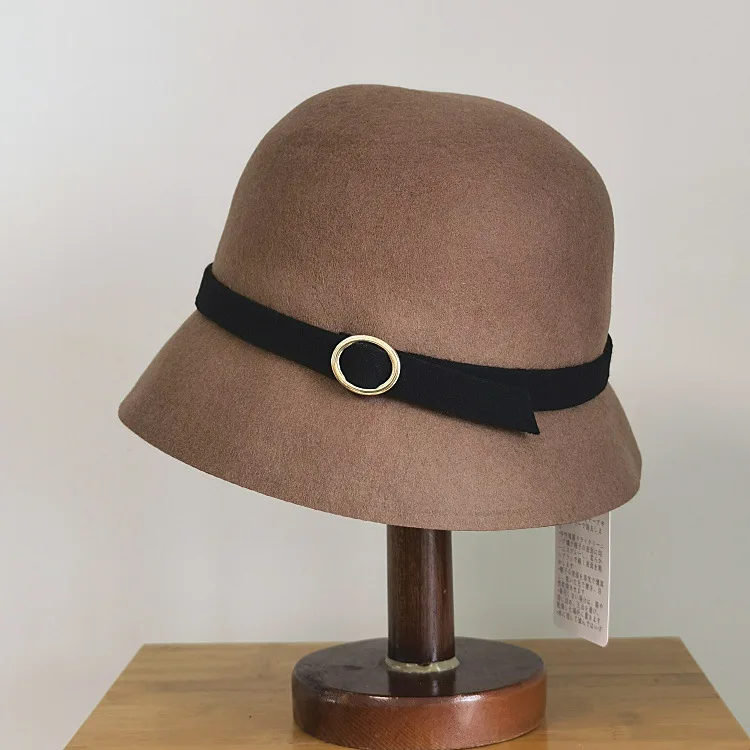 Зимние шляпы-ведра для женщин, высокое качество, шерсть, шляпа-федора, пояс, украшение, модная фетровая шляпа, Ретро стиль, Дамская фетровая шляпа с неравномерными полями