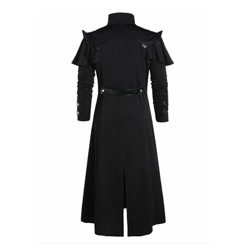 Хэллоуин средневековый стимпанк убийца эльфы пиратский костюм для взрослых мужчин черный Винтажный Длинный сплит куртка Готическая Броня кожаные пальто
