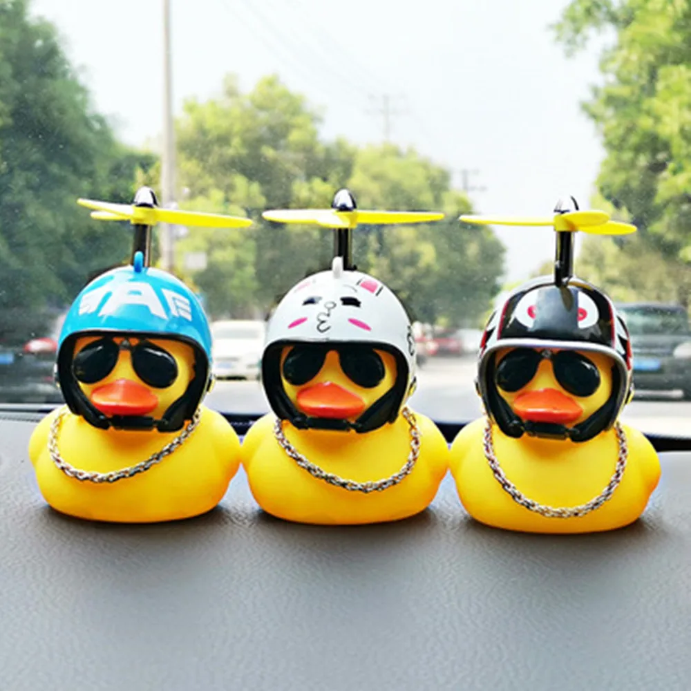 Особенности: он издаст звук при защемлении, материал мягкий, безопасный и прочный, качество утки хорошее, сырье безопасно, и оно не вредит здоровью человека, С шлемом, винтом, солнцезащитными очками, металлической цепочкой для ожерелья, супер круто. Отлично подходит для надевания на автомобильный капот, зеркало заднего вида и т. д. также можно надеть детский шлем, когда они катаются на роликах, это действительно восхитительно.