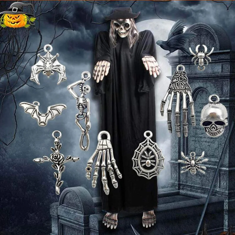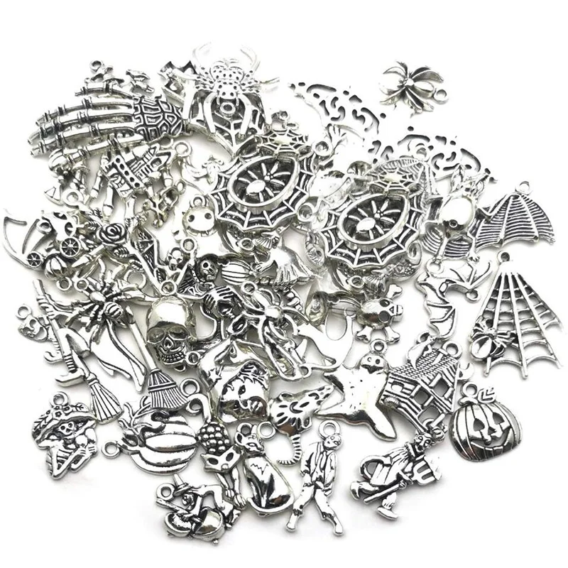 50 шт Смешанные Хэллоуин летучая мышь Скелет Серебряные Подвески DIY Изготовление ювелирных изделий