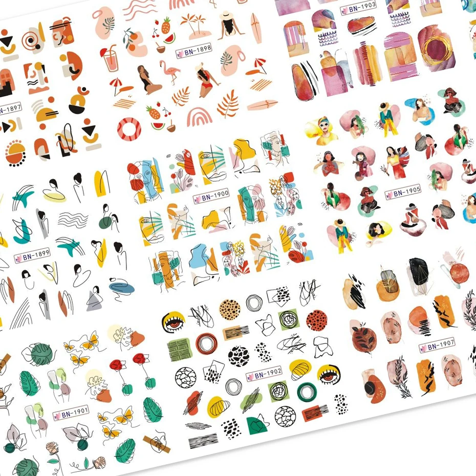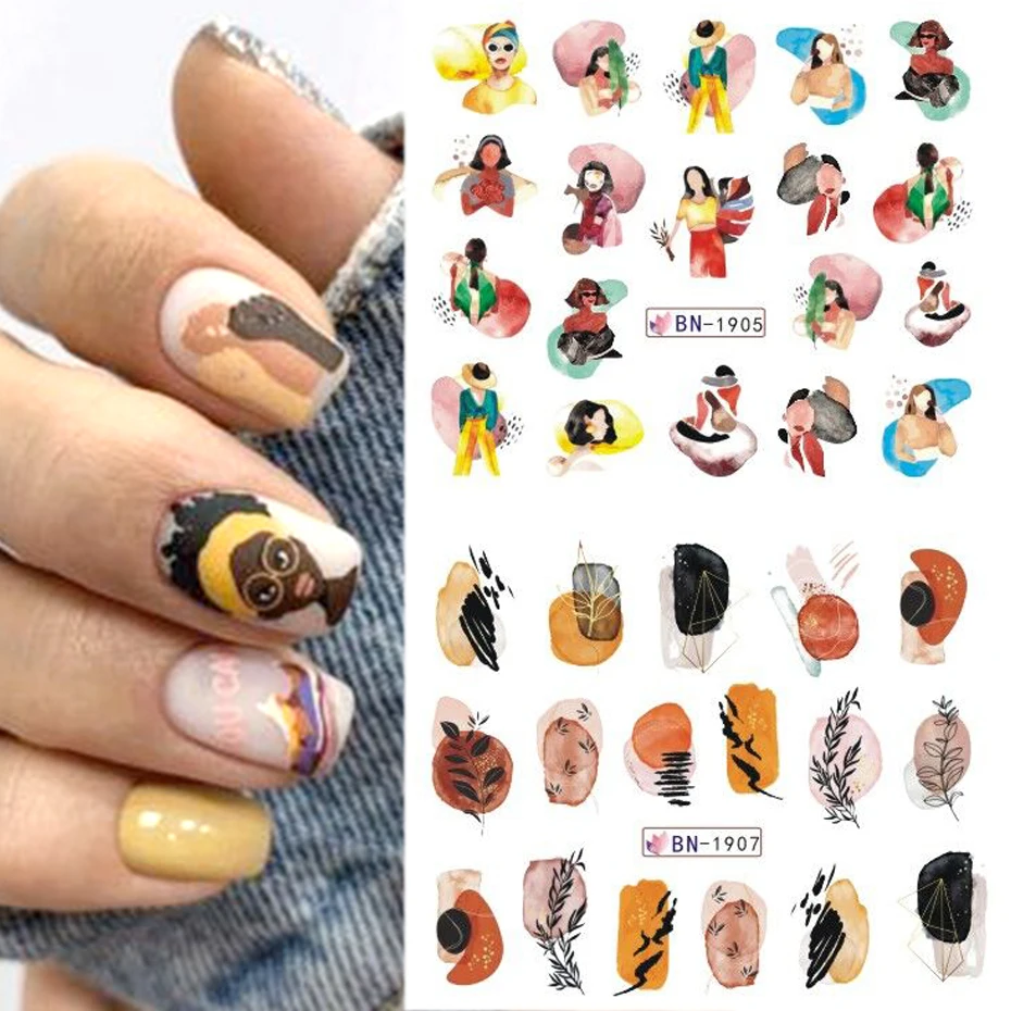 12 шт в упаковке сексуальные леди в форме 3D наклейки для ногтей с изображением лица изображения листьев цветок наклейки ползунок черного и белого цвета для ногтевого дизайна decorarion