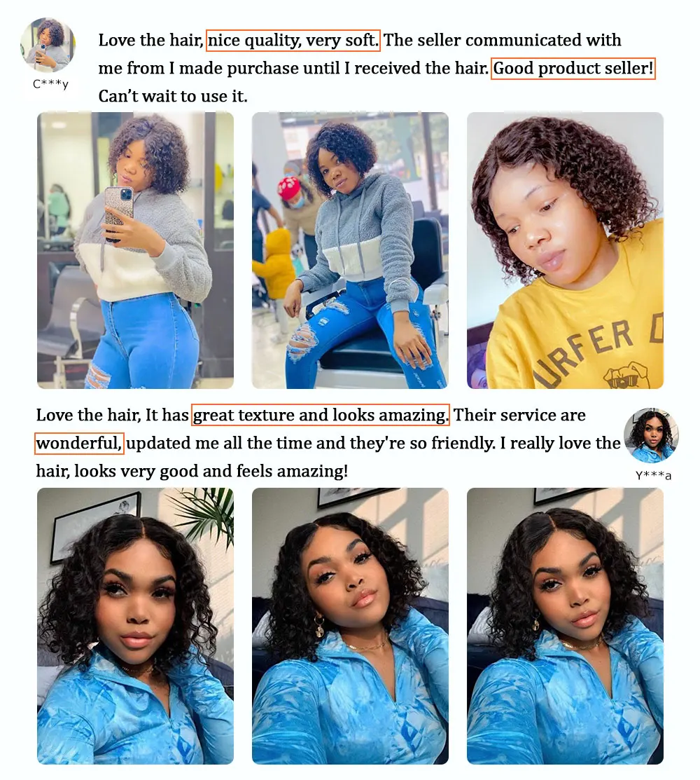 1. Наименование товара: парики с глубоким волнистым кружевом2. Плотность парика: 150% /180% 250% плотность3. Материал волос: 100% человеческие волосы4. Цвет волос: 1B/натуральный цвет5. Длина волос: 10-16 дюймов6. Вес нетто: 120 г-250 г7. Время доставки: Доставка в течение 24-48 часов8. Характеристики: предварительно выщипывающийся натуральный волос, может быть окрашен и отбелен9. Настройка: мы можем принять другие цвета и размер париков