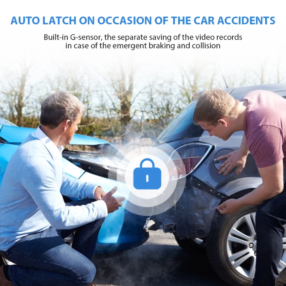 3. [умная работа]-когда sd-карта заполнена, камера приборной панели автоматически перезаписывает старое видео с новым видео. Аварийная запись, активированная датчиком гравитации, автоматически обнаруживает случайные события вождения и защищает запись. Примечание: для работы требуется карта micro SD (максимальная поддержка 32 ГБ).