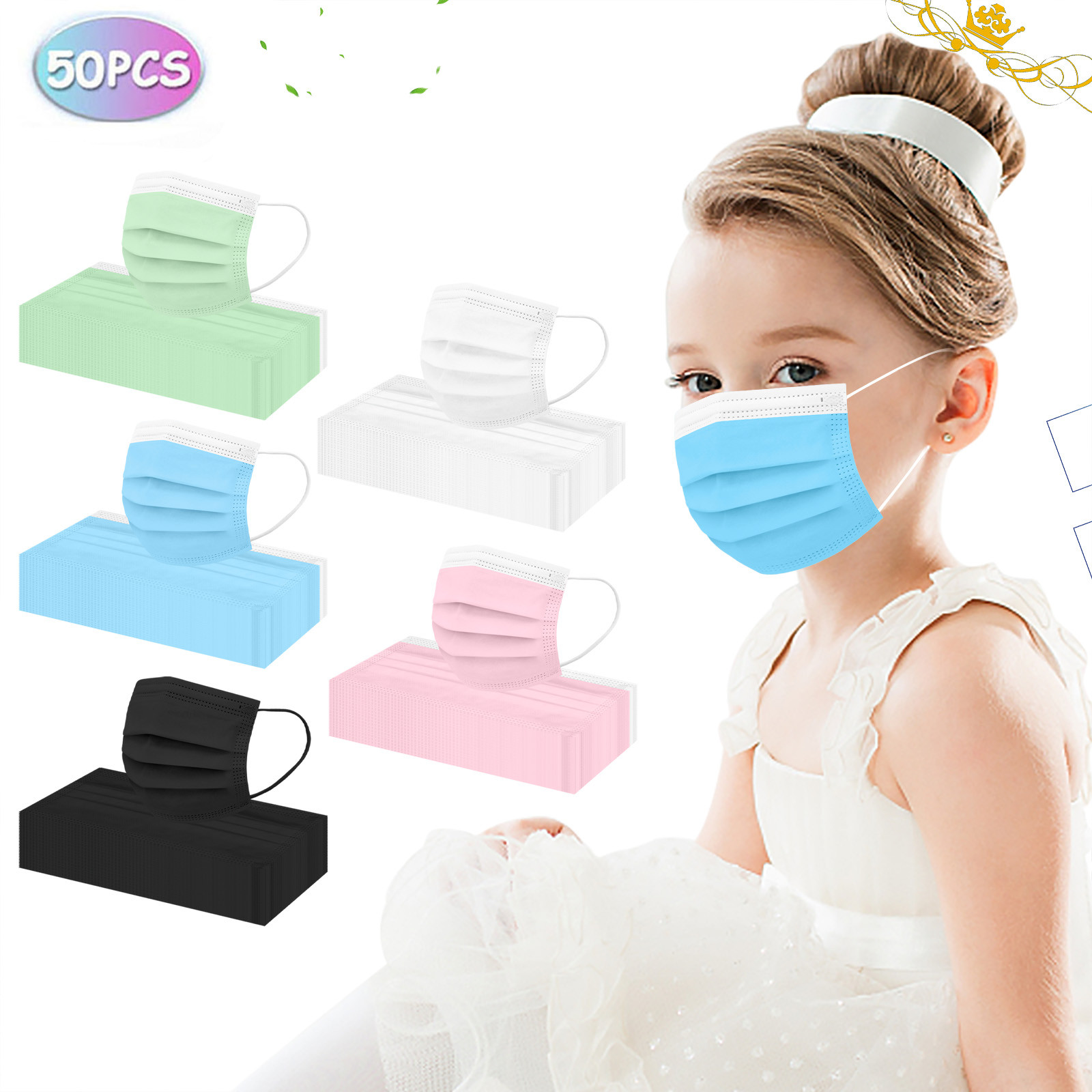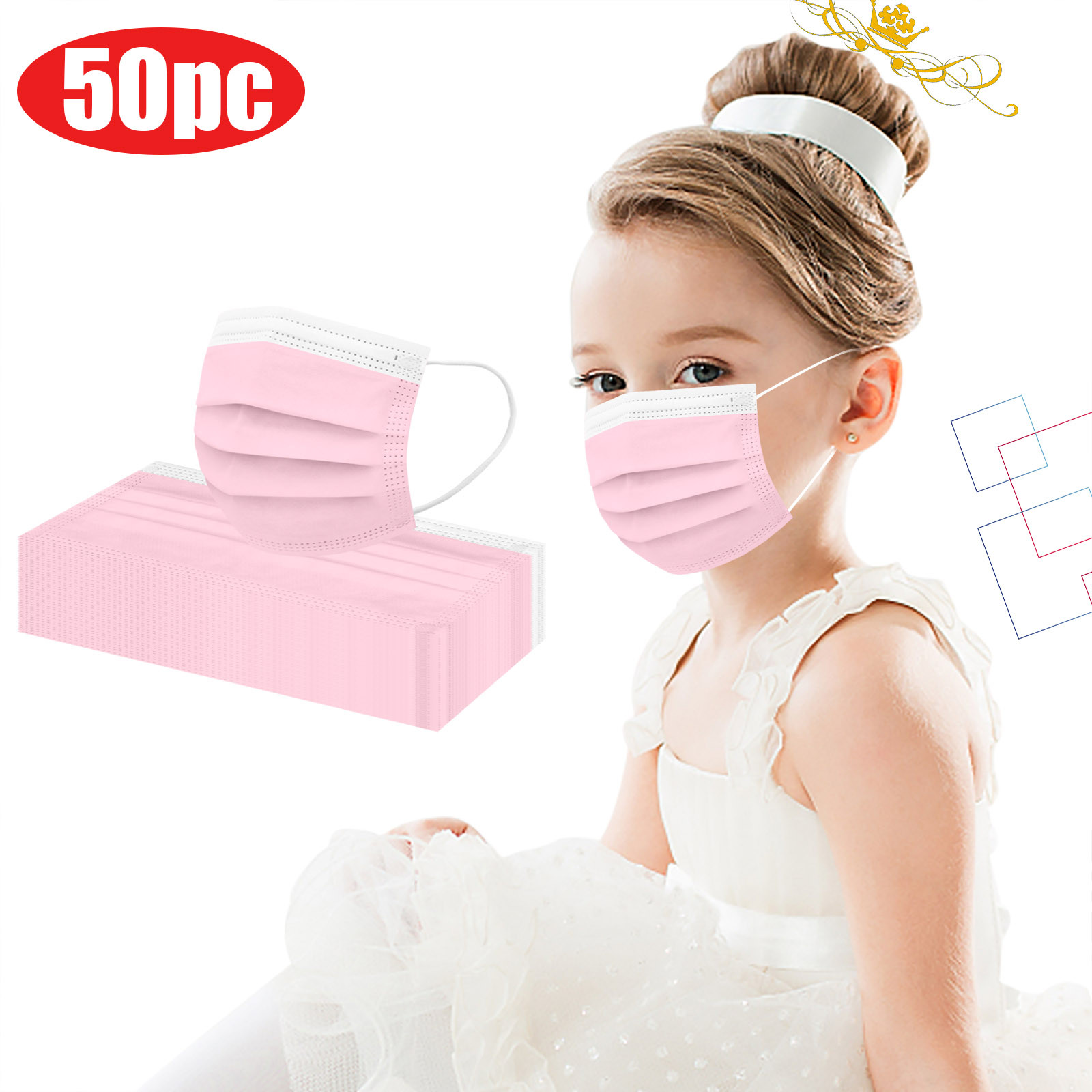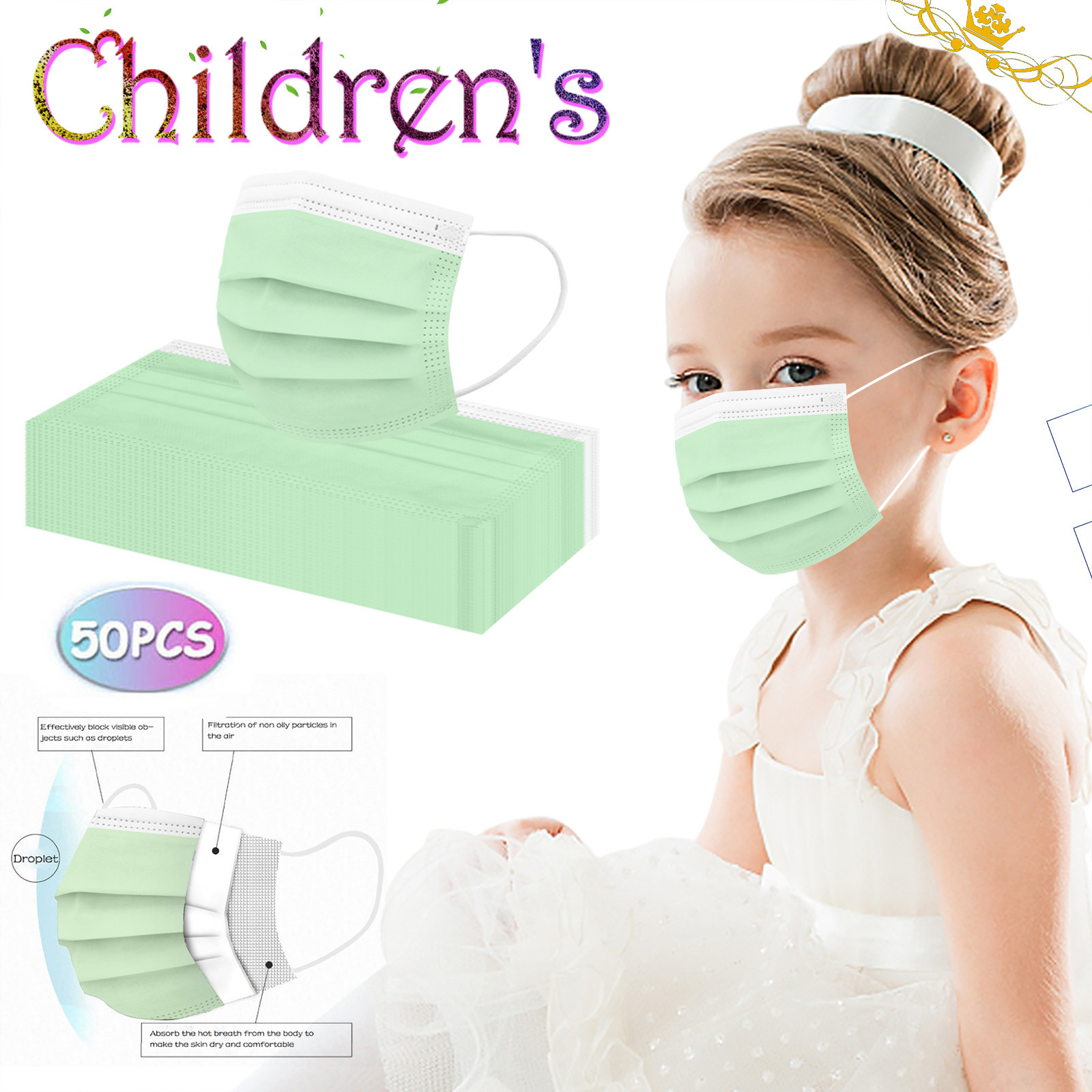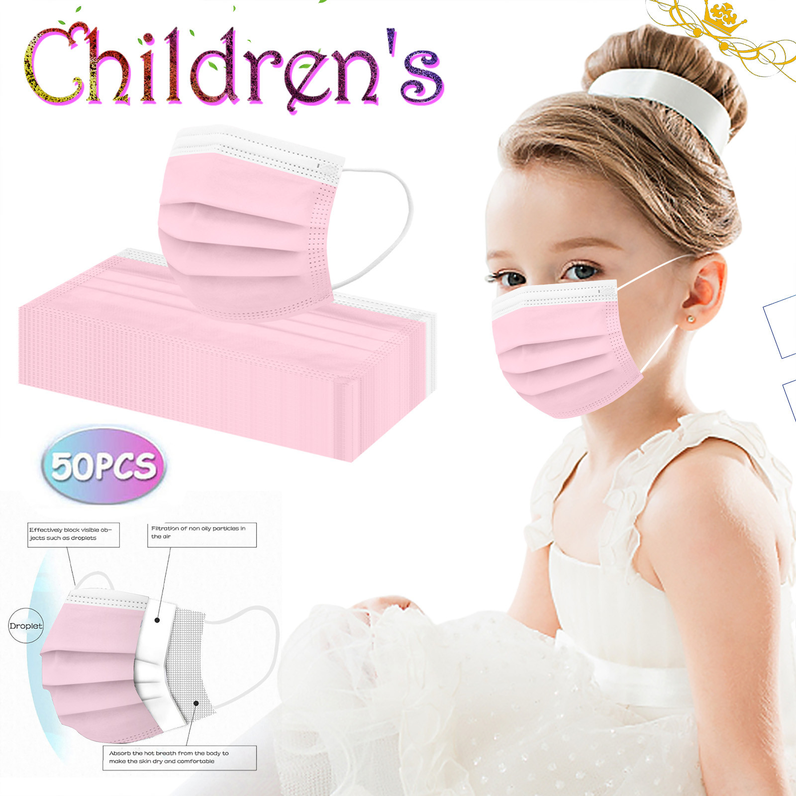 Детские маски для лица 50 шт одноразовые 3 слойные защитные маски для лица-с нановолоконным фильтром подкладка-Возраст 4-12 детей маска для лица