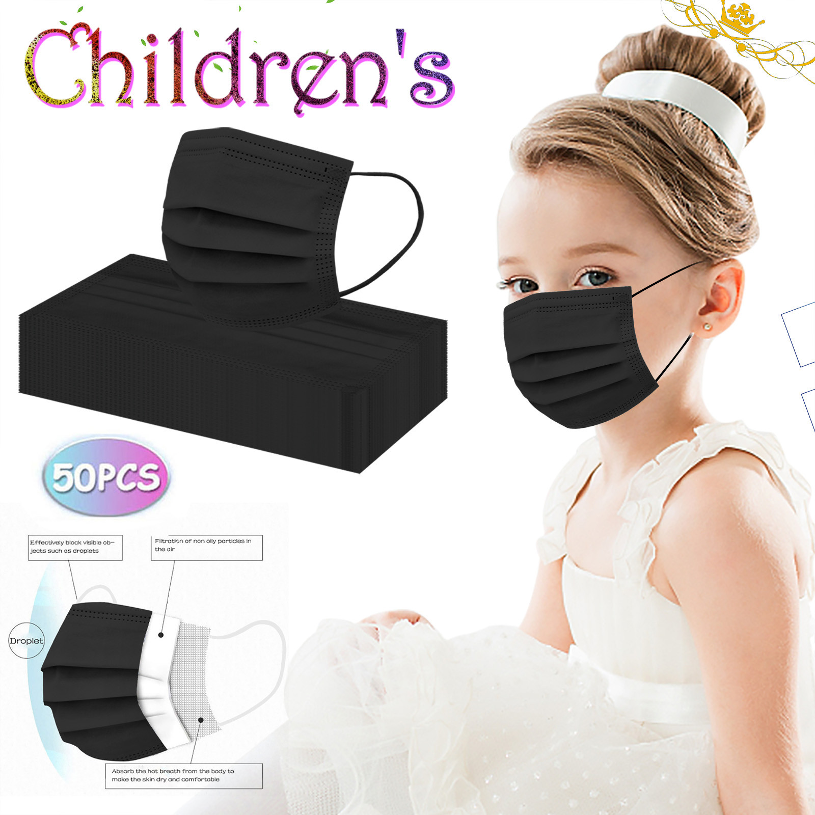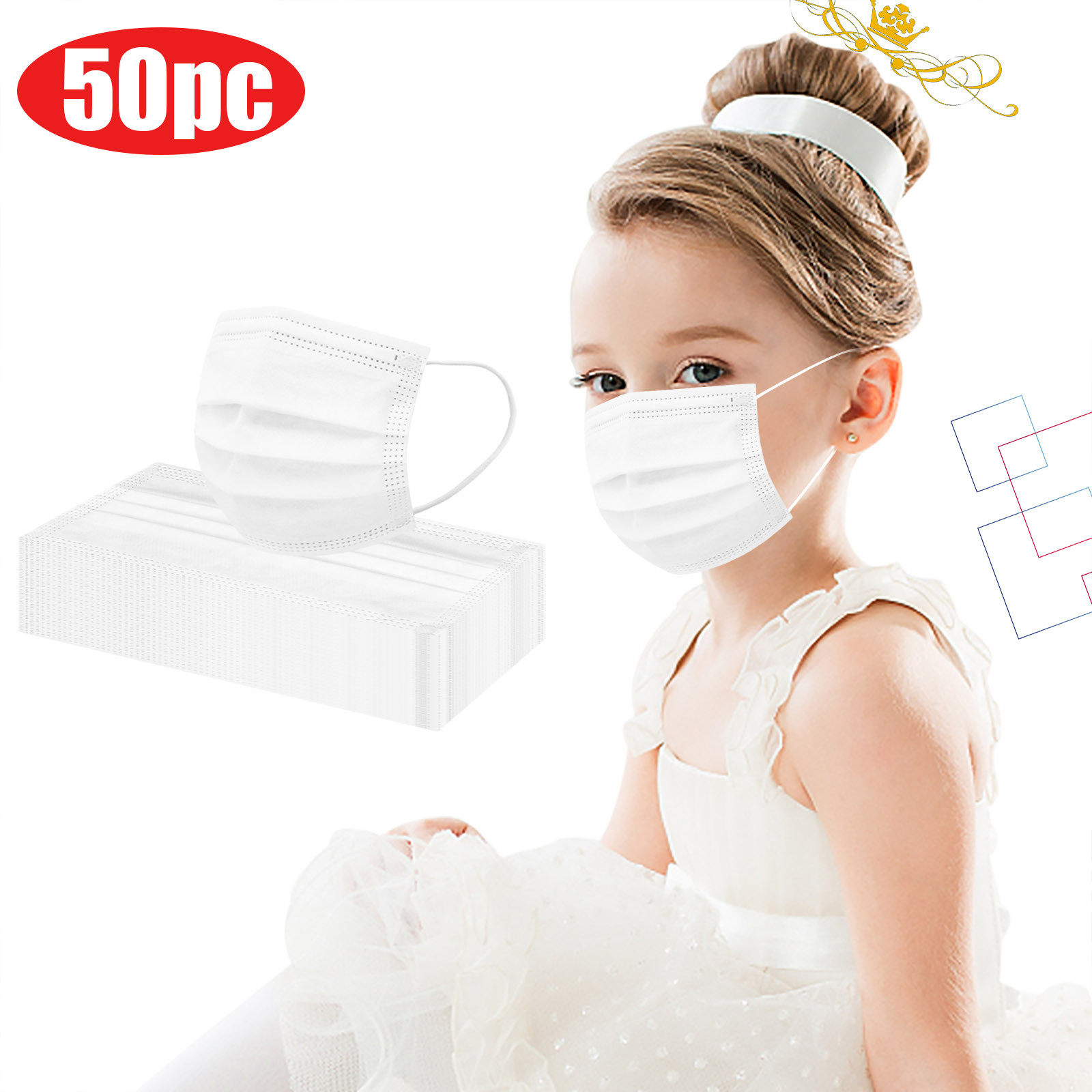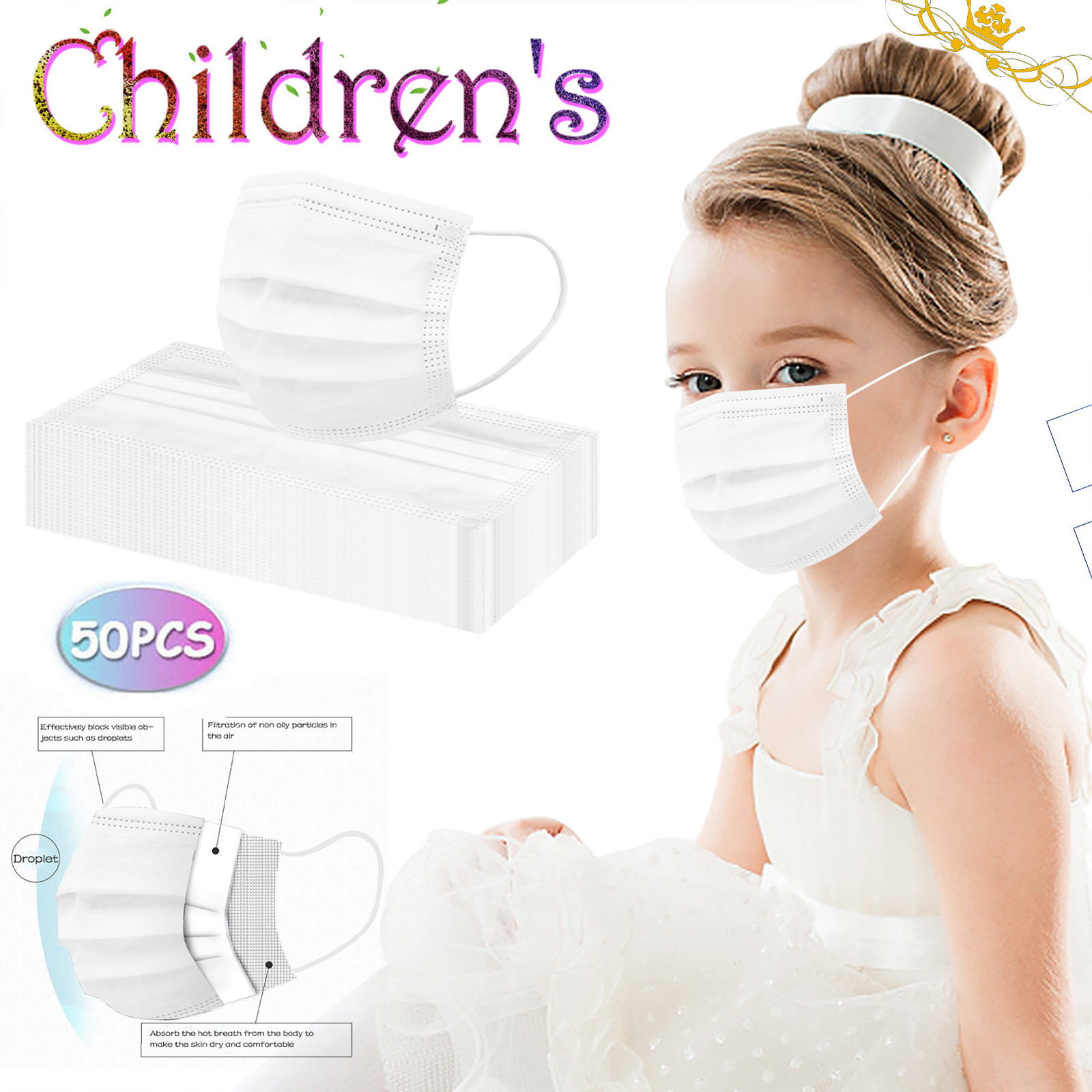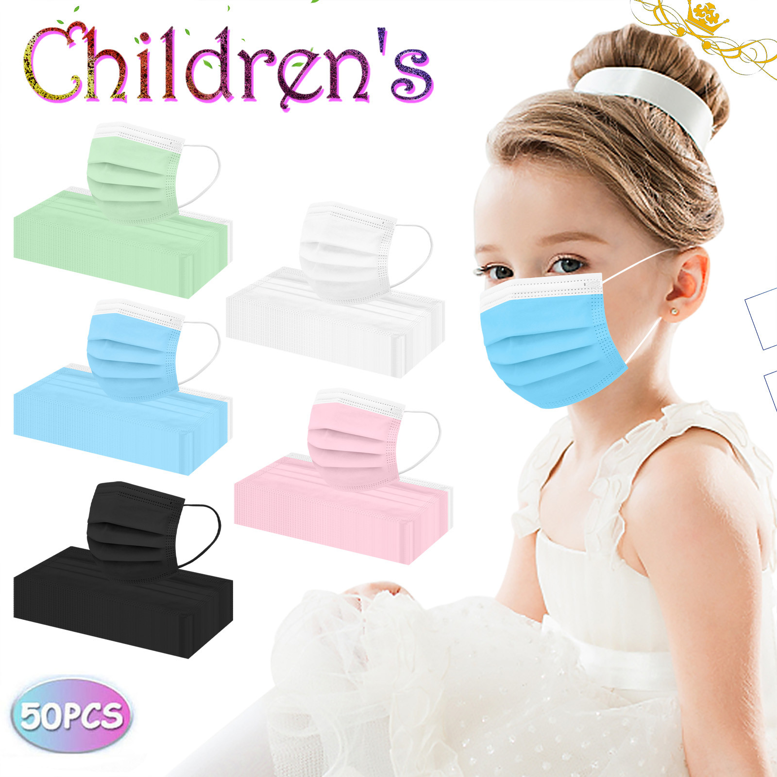 Детские маски для лица 50 шт одноразовые 3 слойные защитные маски для лица-с нановолоконным фильтром подкладка-Возраст 4-12 детей маска для лица
