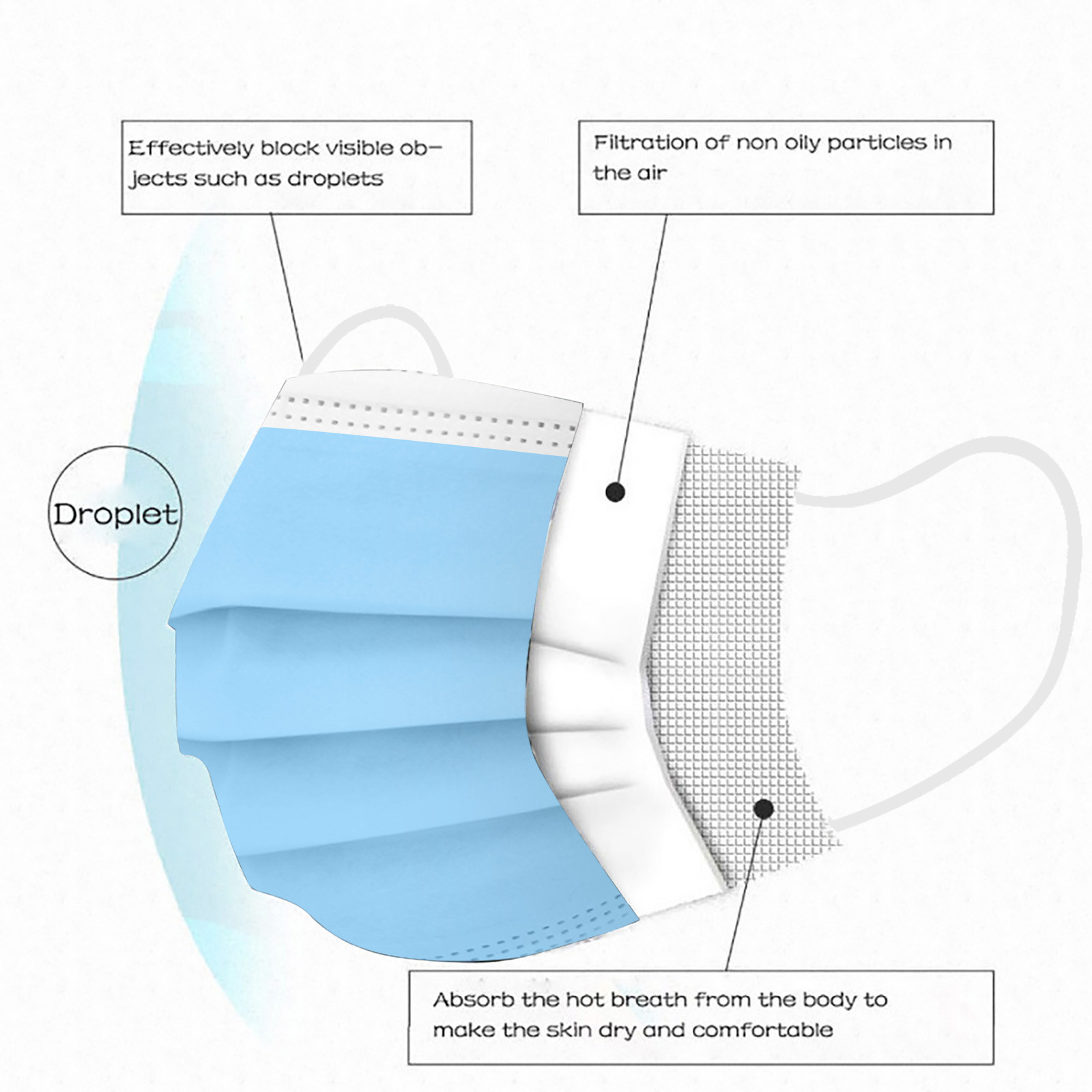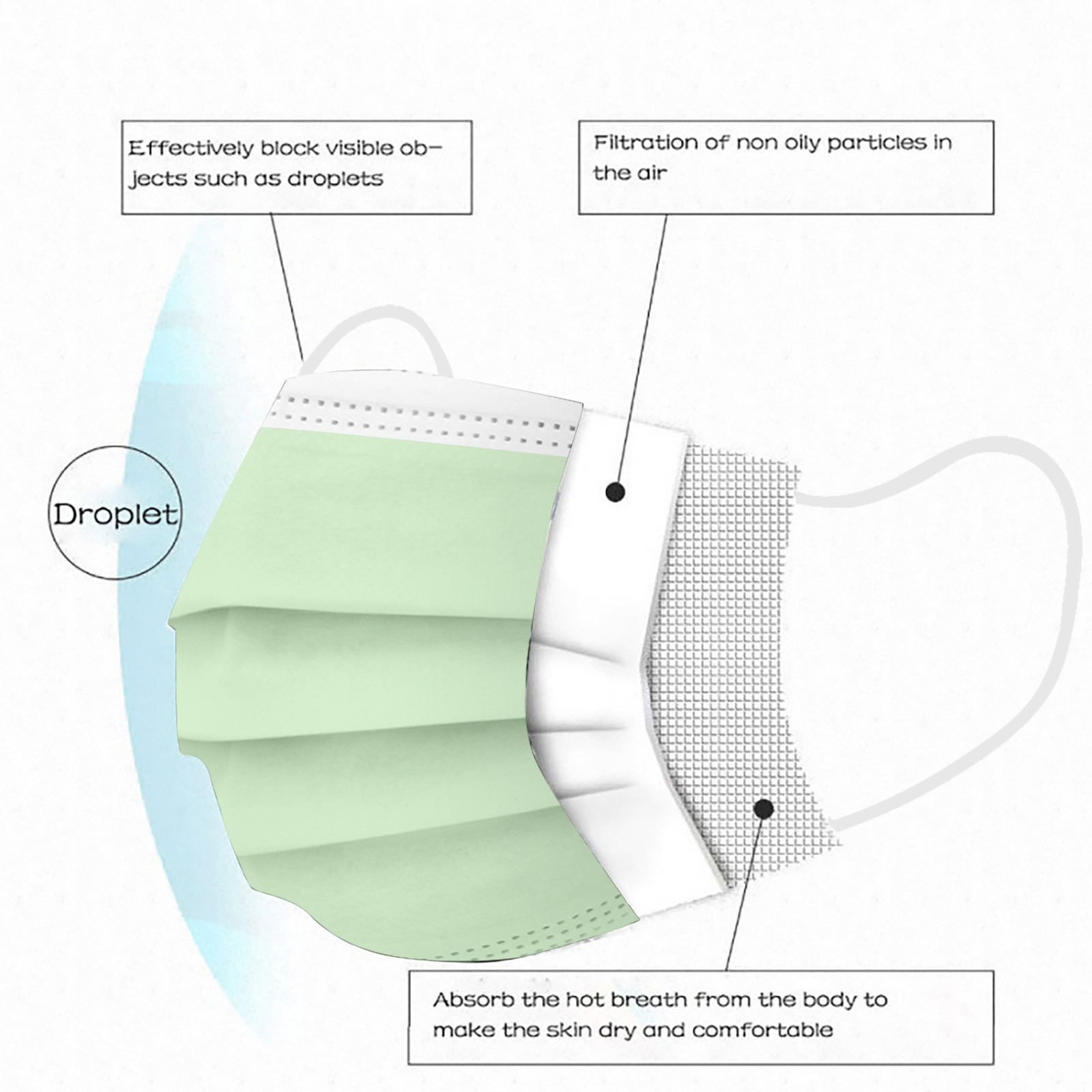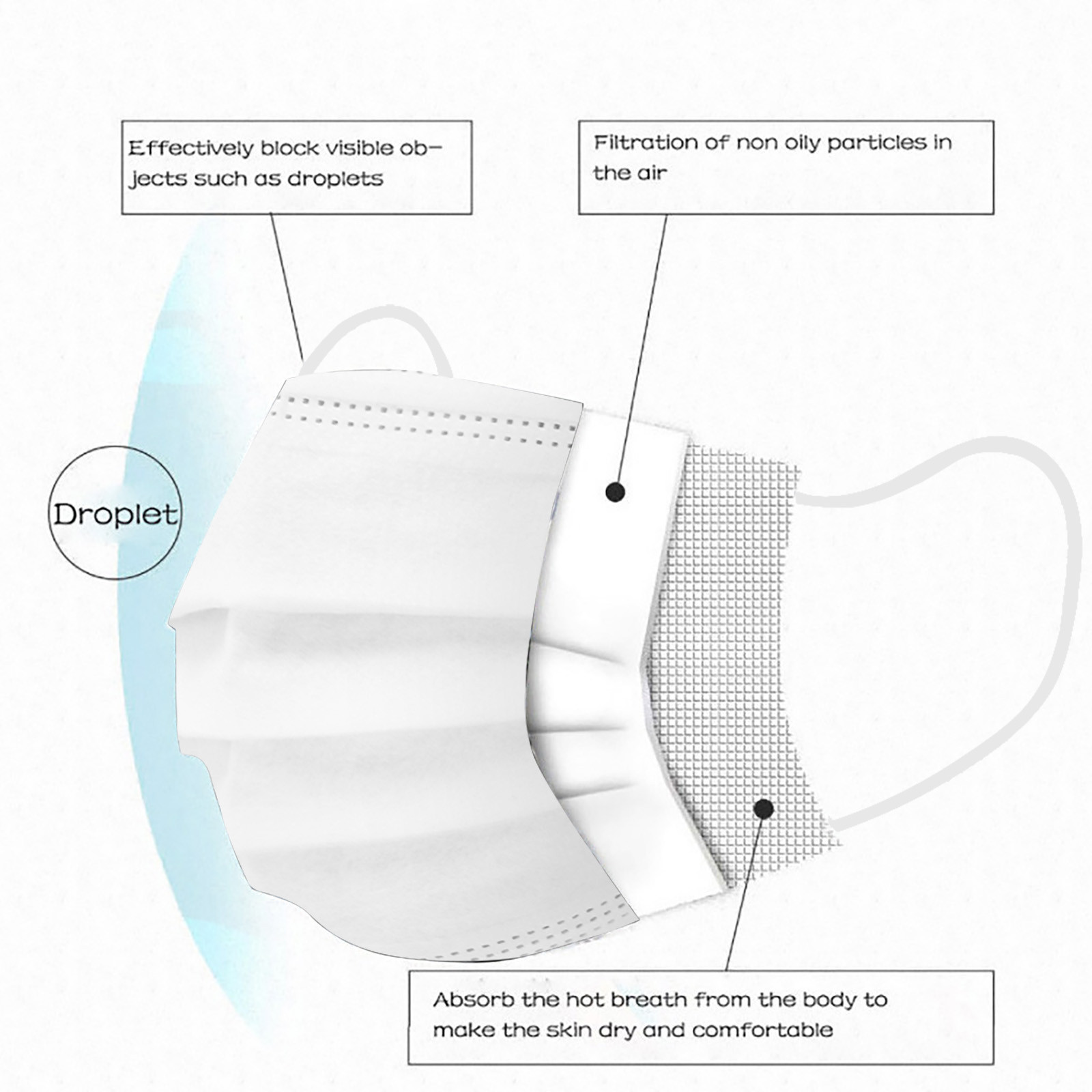 Материал-изготовлен из нетканого материала и расплавленной ткани. Не раздражает, мягкий и удобный. 3 слоя защиты для предотвращения агаиNst D'ust aПрочие загрязнители.