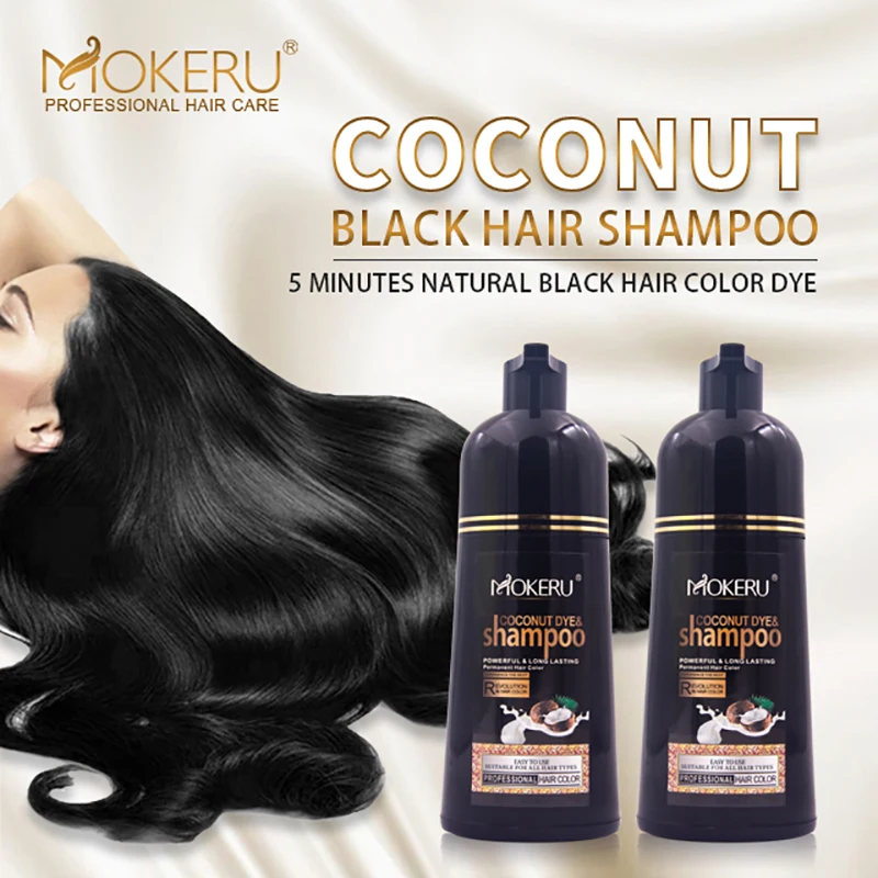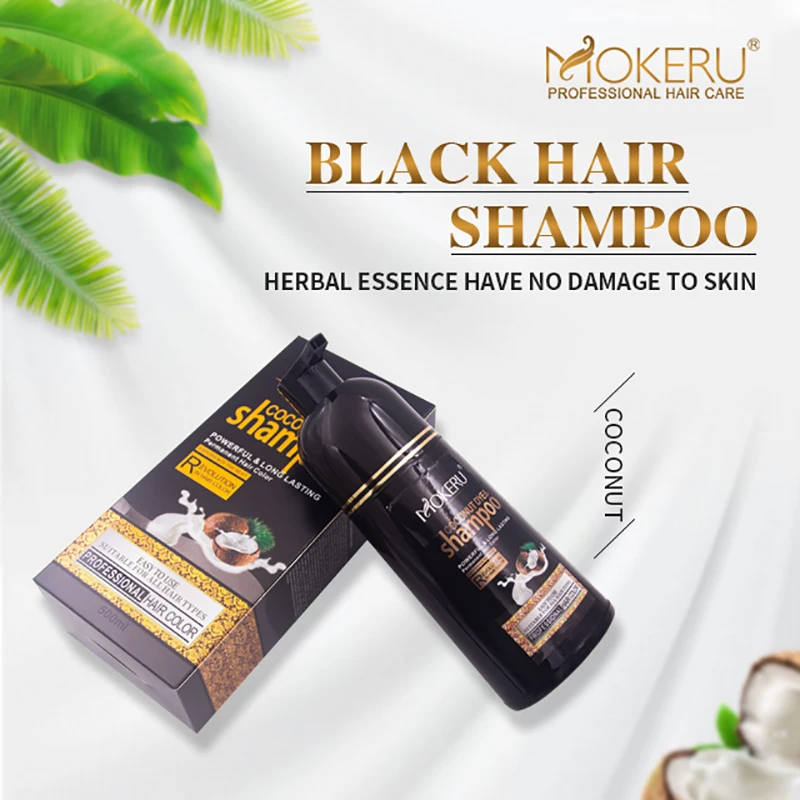 Мокеру кокосовое масло волос черный краситель шампунь-это вид шампуня, который может покрасить волосы в черный в течение 5-25 минут и специально разработан, чтобы сделать ваши волосы черными блестящими только через обычный процесс стирки волосы в ванной.КокосМасляная черная краска для волос шампунь также питает, защищает и восстанавливает кожу головы. По сравнению с традиционной краской для волос, она имеет преимущество низкой стоимости, экономит время.