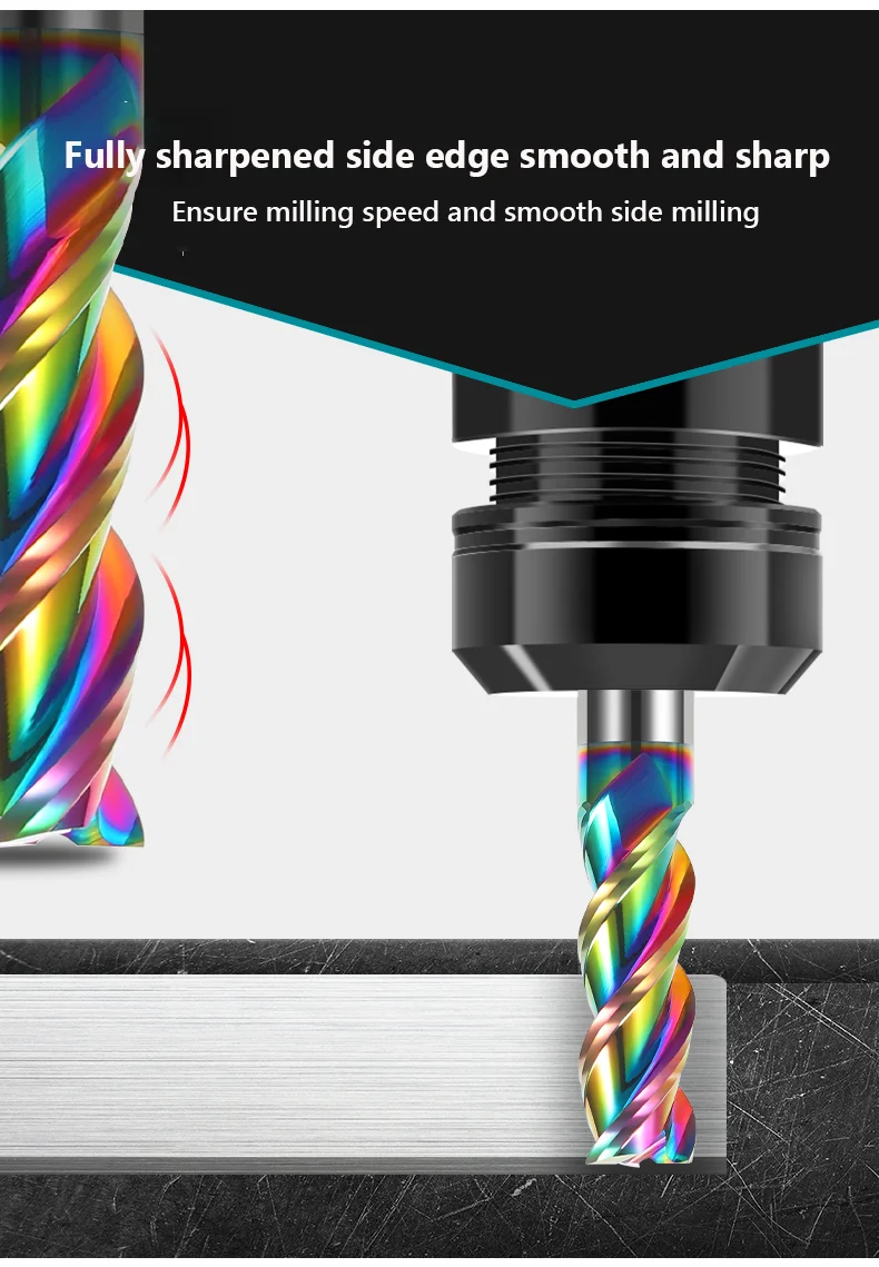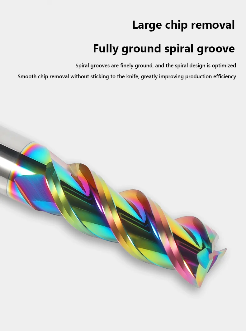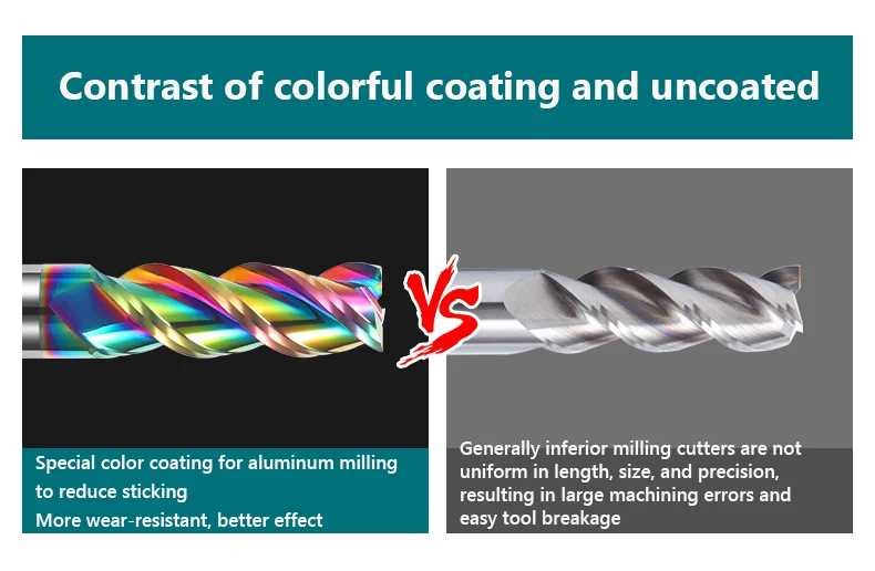 2. Специальное цветное покрытие для фрезерования алюминия, уменьшение прилипания, более износостойкое и лучшее воздействие