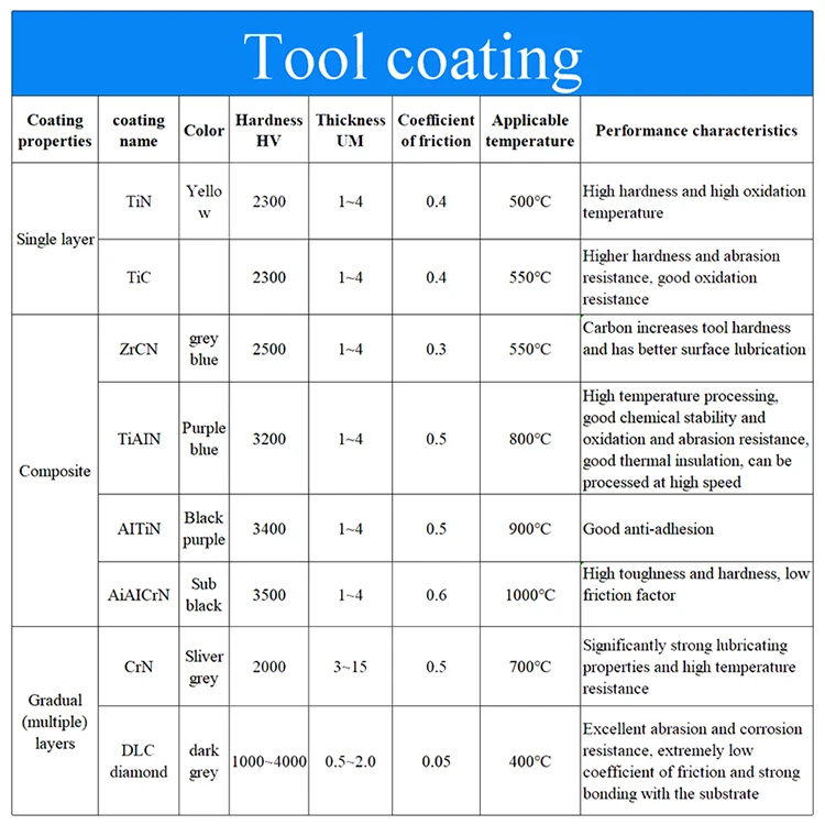 1. Многослойное покрытие, DLC покрытие имеет высокую твердость и высокую износостойкость. По сравнению с без покрытия, он более износостойкий, и его срок службы увеличивается в 4-5 раз