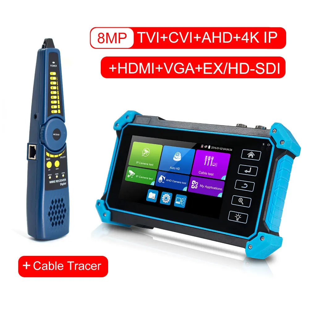 Поддержка 8MP TVI + 8MP CVI + 8MP AHD + 4K H.265 IP + аналоговый + HDMI IN + VGA в тесте + кабель Tracer