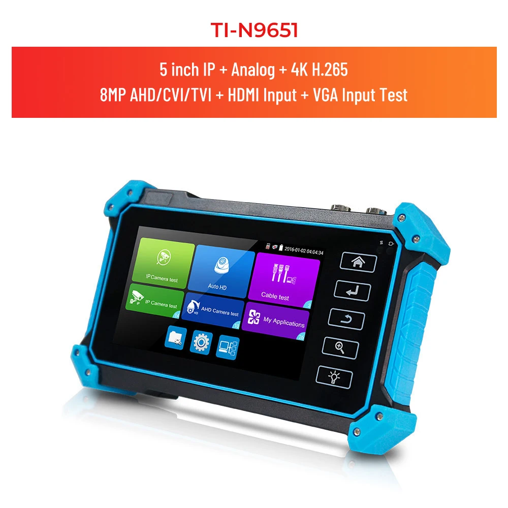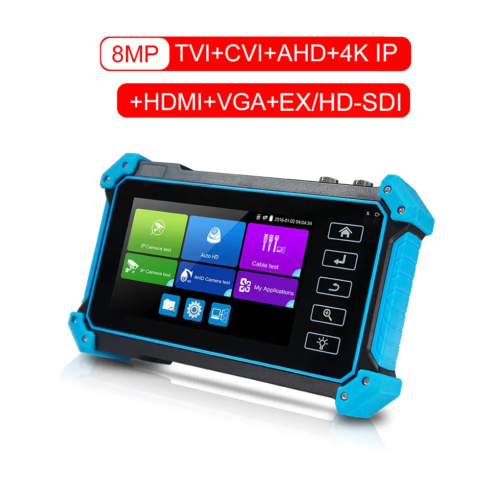 5-дюймовый IPS сенсорный экран ip-камера тестер предназначен для обслуживания и установки IP аналоговый видеорегистратор, HD коаксиальный камеры, а также другое оборудование для безопасности. Разрешение 1920*1080 позволяет ему отображать сетевые HD камеры и аналоговые камеры в высоком разрешении. Устройство поддерживает множество ONVIF PTZ и аналогового PTZ управления, и функции тестирования кабеля. Для завершения работы установщикам системы видеонаблюдения часто необходимо использовать различные инструменты тестирования. Если взять все в одном тестере камеры, делая условия работы более безопасными и увеличивая производительность.