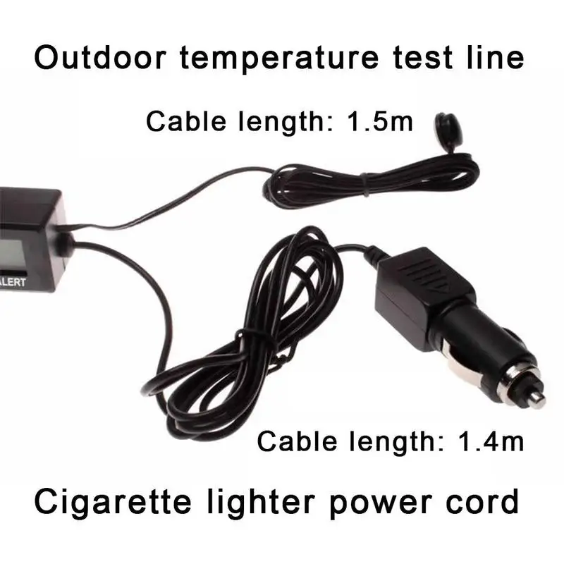 1. Подключите разъем к автомобильному прикуривателю, поставьте датчик температуры снаружи и зафиксируйте его у двери автомобиля для края, затем запустите автомобиль, продукт будет отображать температуру в помещении (значок отображается в) и напряжение автомобильного аккумулятора.