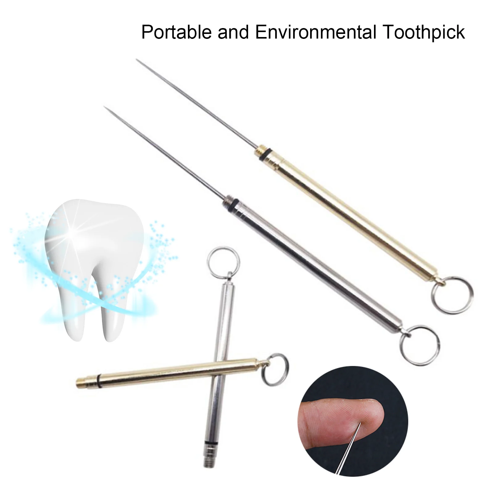 Эта металлическая зубочистка сделана из t-itanium, которая экологична, d-rable и портативна. Это не просто зубочистка, и вы также можете использовать его, чтобы есть фрукты и так далее.